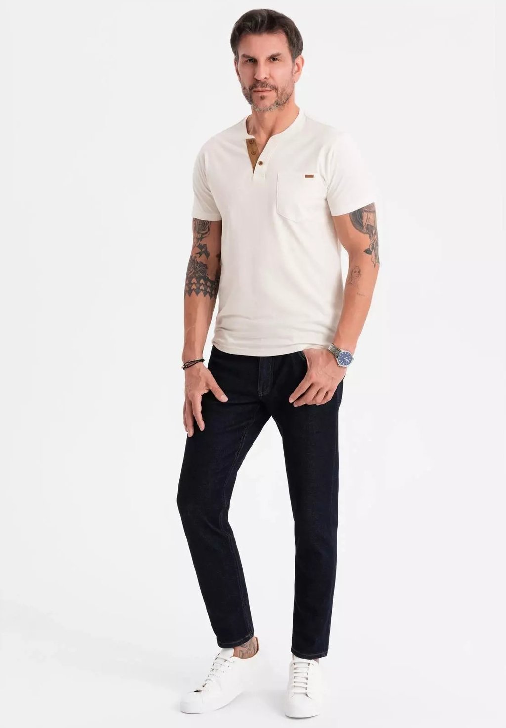 Базовая футболка BUTTON-DOWN NECK Ombre, белый
