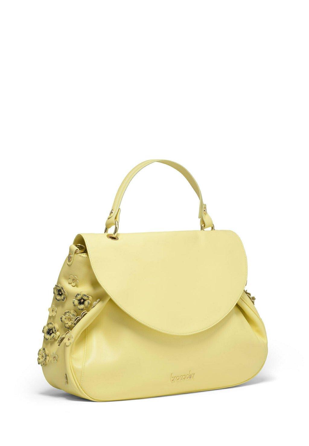 Детали: аппликация в виде цветка, декоративные заклепки, пряжка.