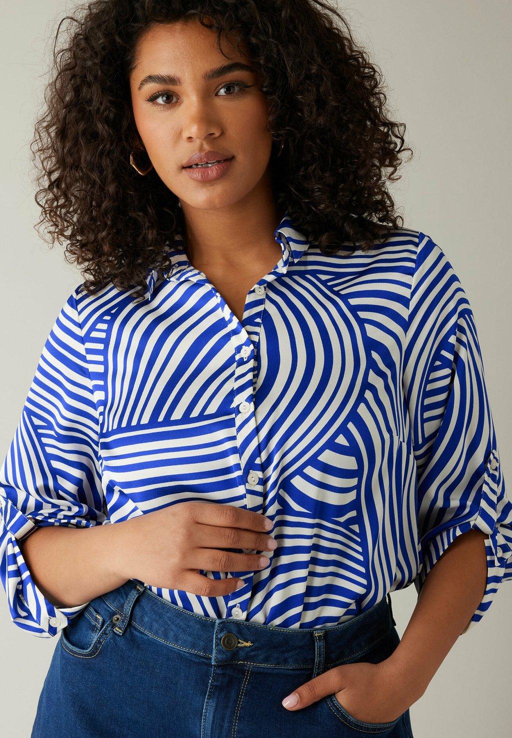 Блузка на пуговицах ABSTRACT PRINT TAB SLEEVE Evans, синий