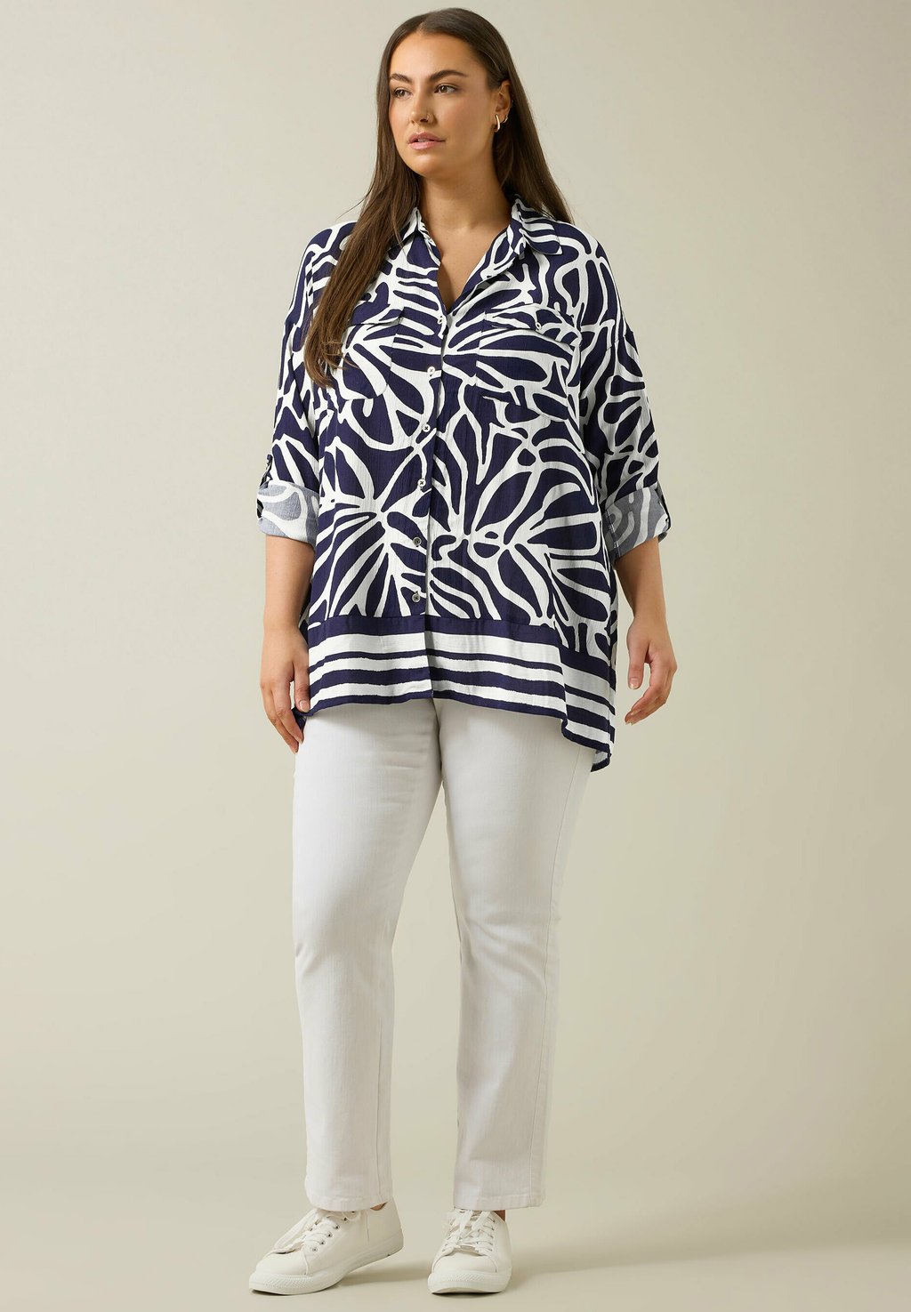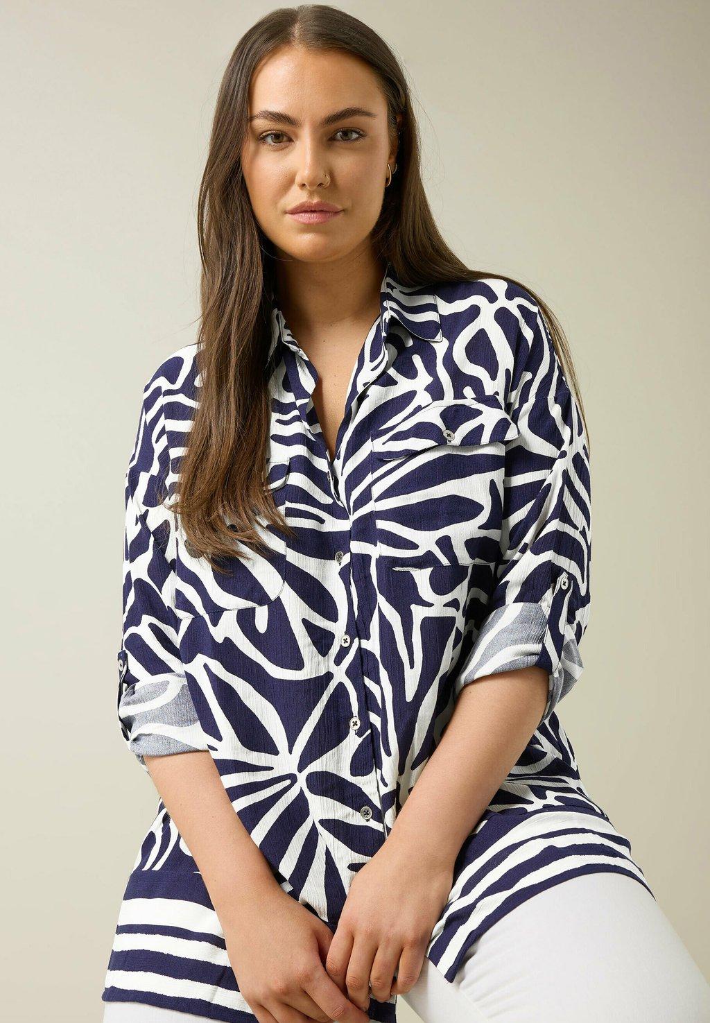 Блузка на пуговицах PALM BORDER PRINT Evans, темно-синий