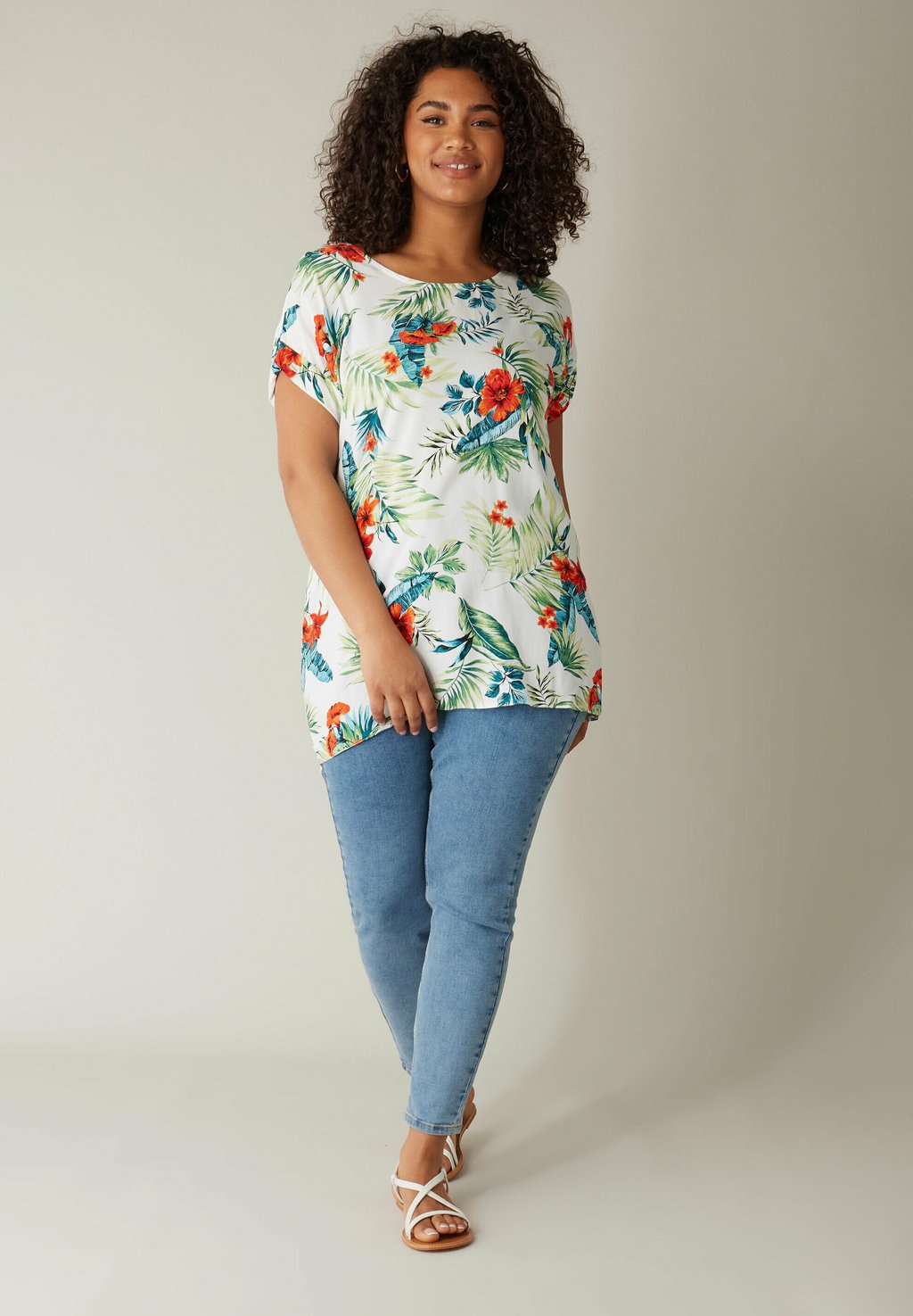 Туника TROPICAL PRINT SHORT SLEEVE Evans, белый
