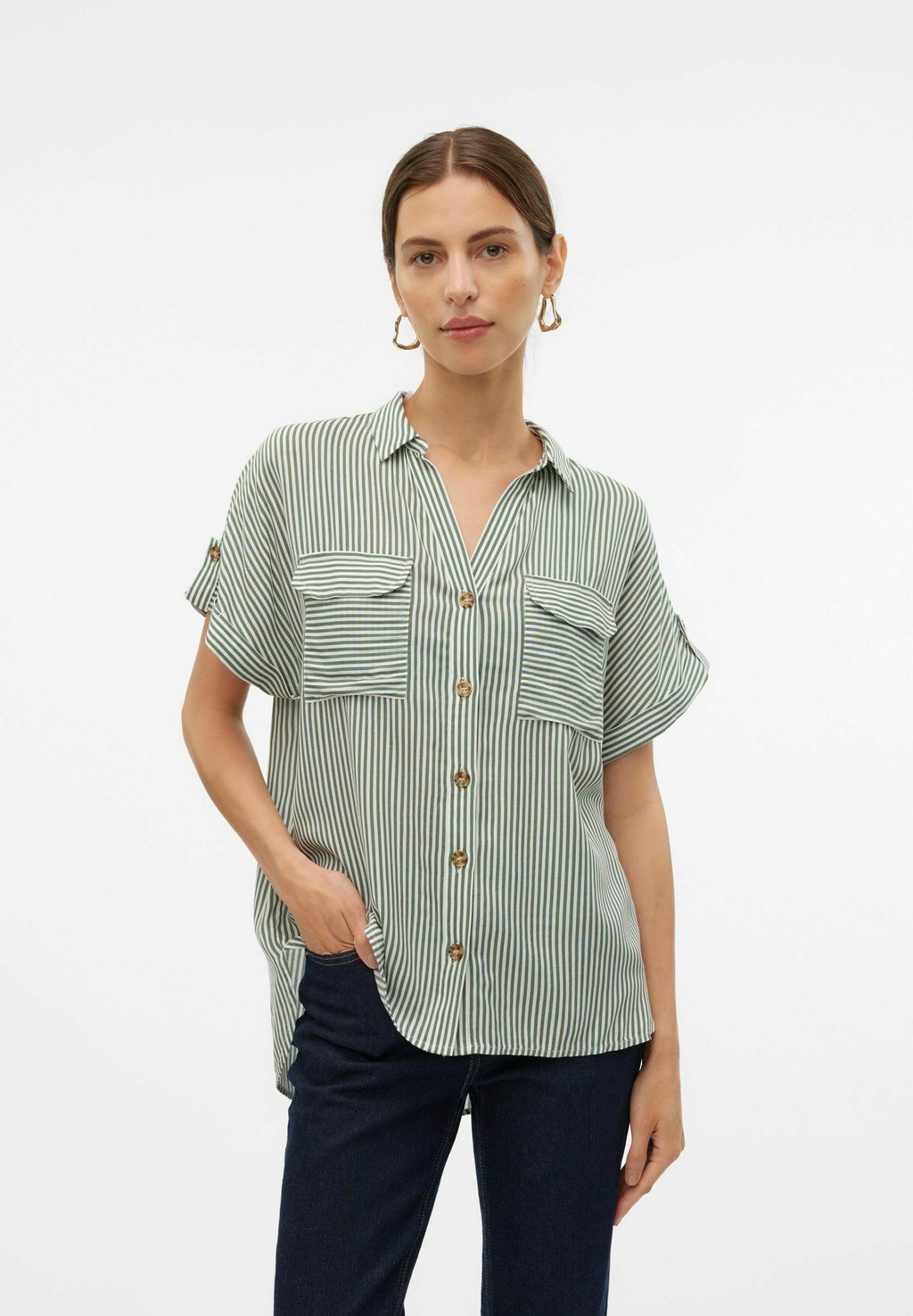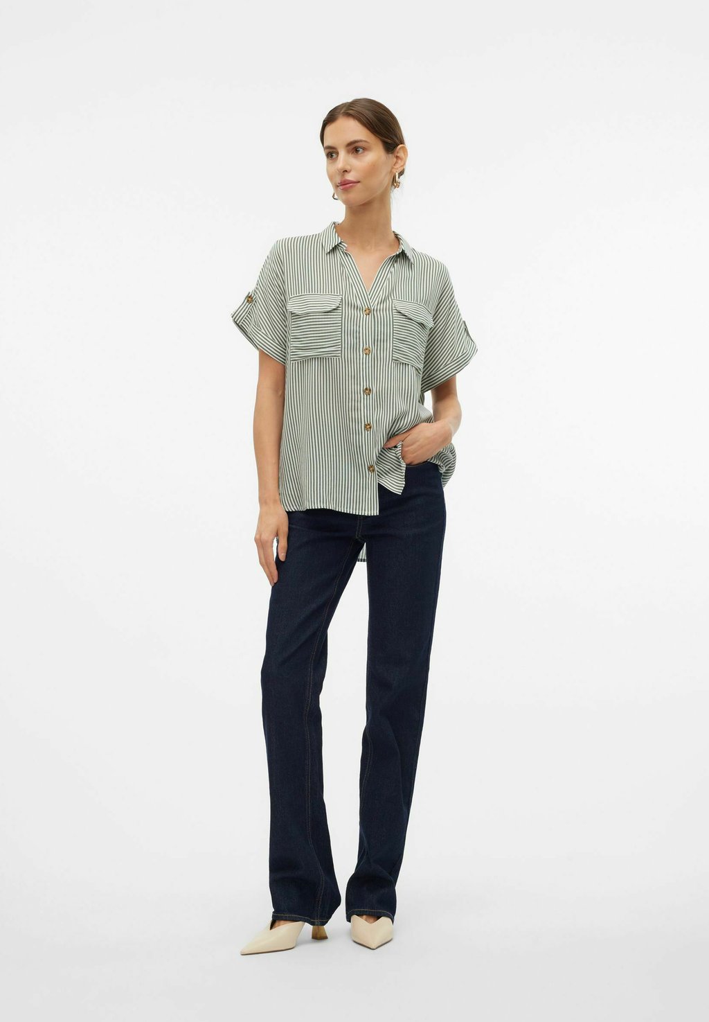 Блузка на пуговицах VMBUMPY Vero Moda, зеленый