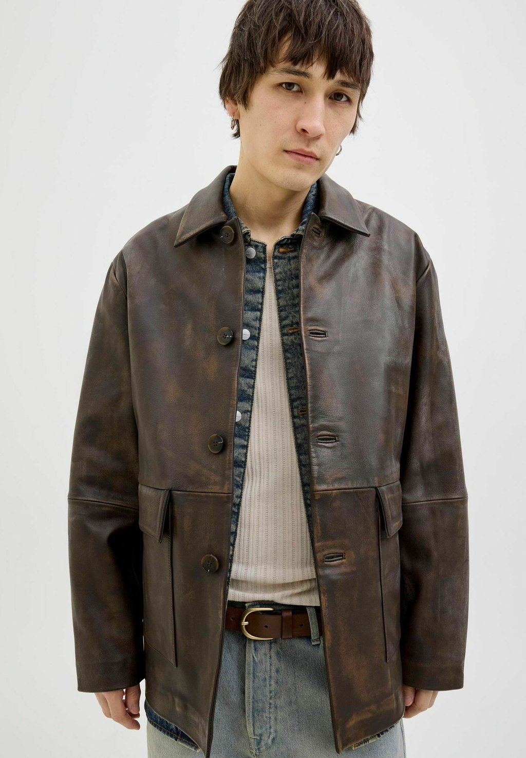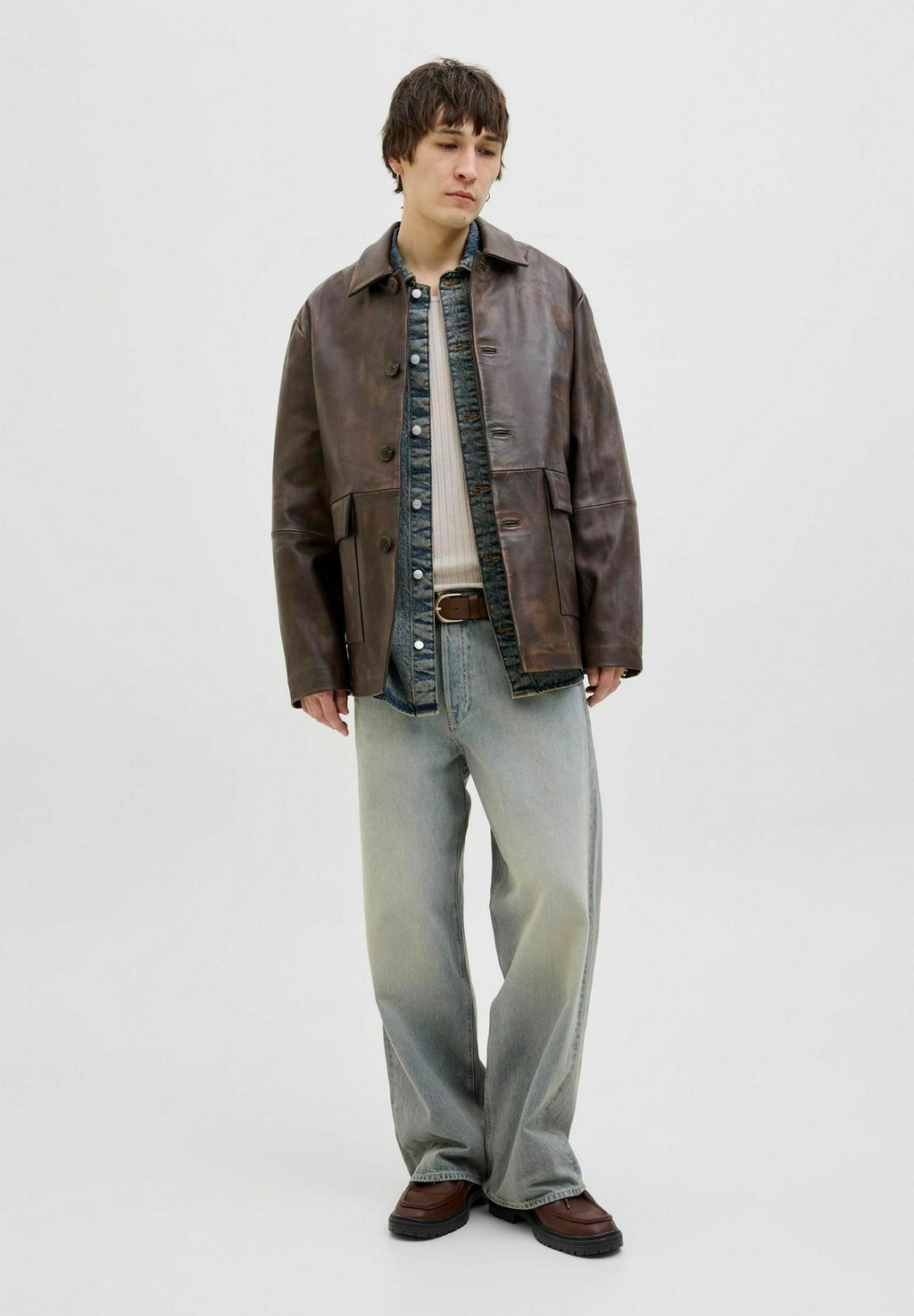Кожаная куртка Jack & Jones, коричневый 30 753₽