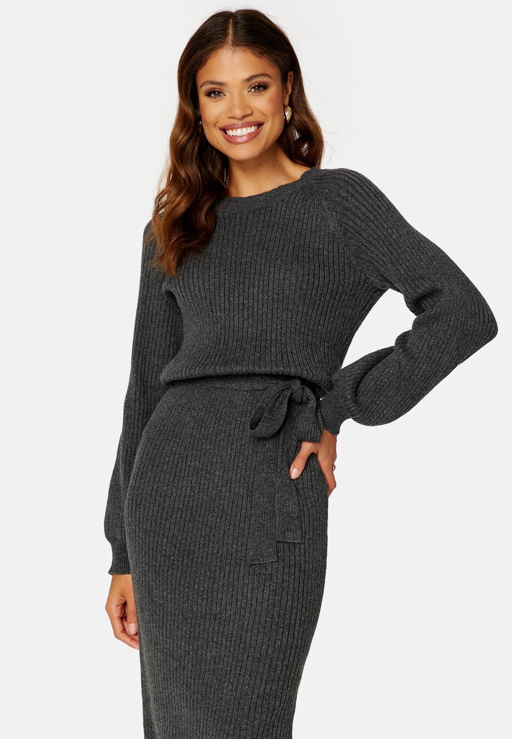 Платье-джемпер ROUND NECK RIB KNITTED MIDI DREESS Bubbleroom, серый