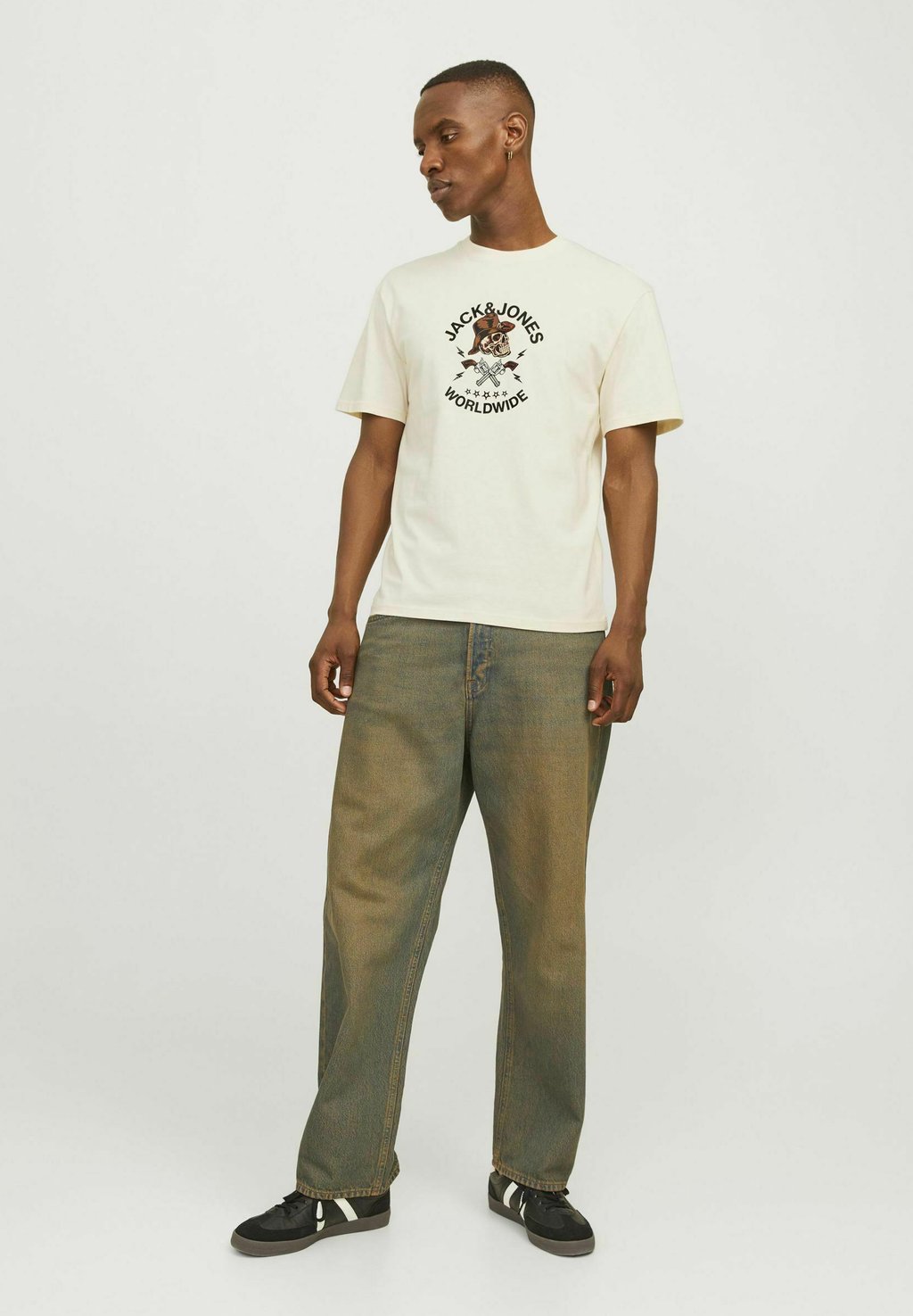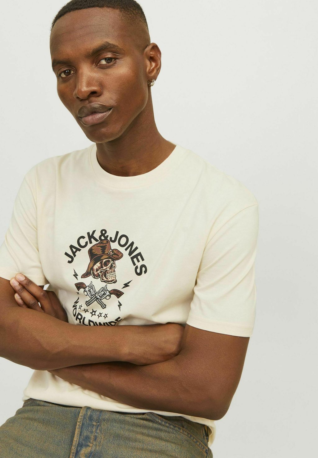 Футболка с принтом RUNDHALS Jack & Jones, бежевый