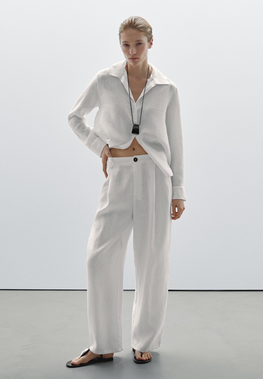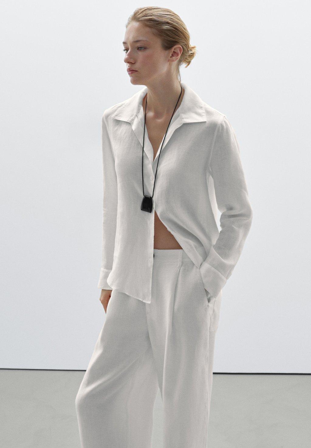 Блузка на пуговицах Massimo Dutti, белый