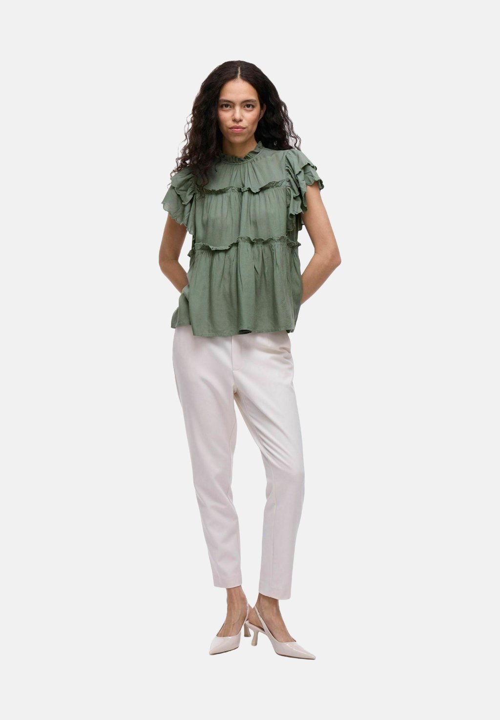Блуза MIT ANGESCHNITTENEN ÄRMELN VIPRETA STEHKRAGEN VILA, хаки 5 777₽