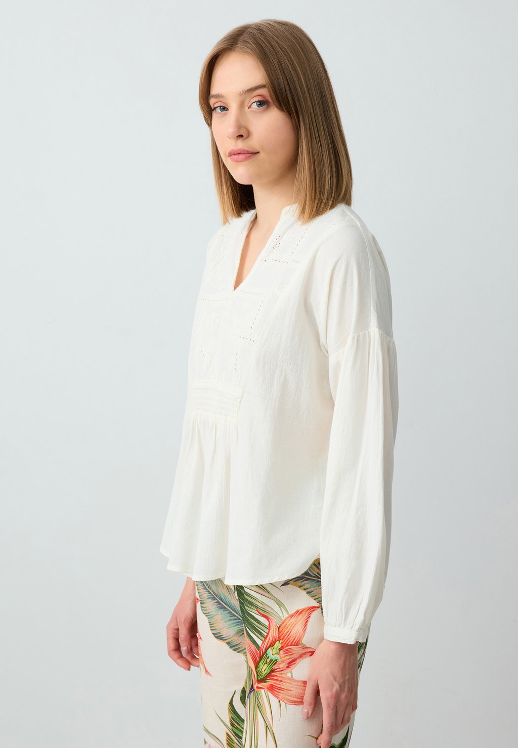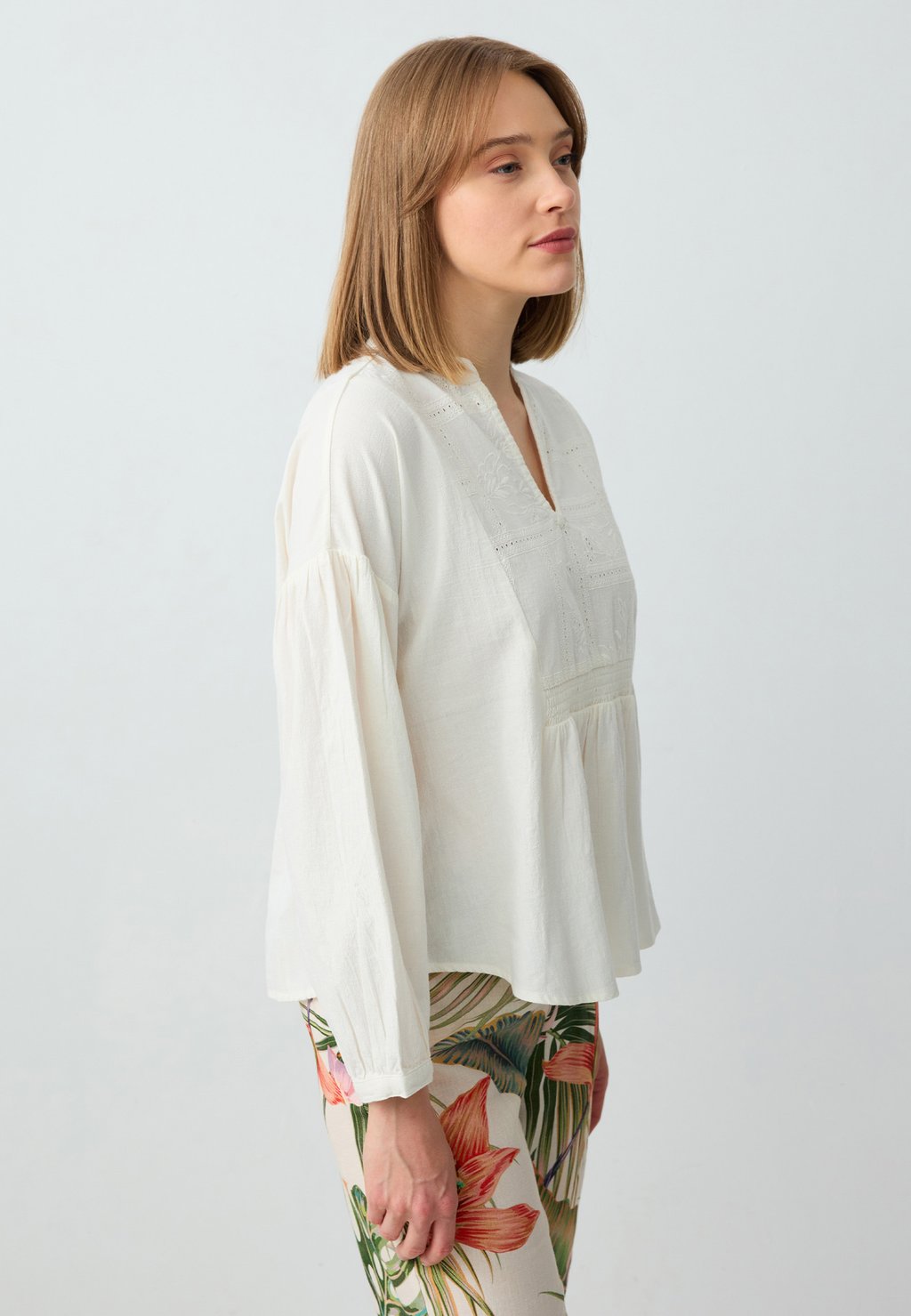 Блуза RELAXED FIT V-NECK LONG SLEEVE Jimmy Key, кремовый