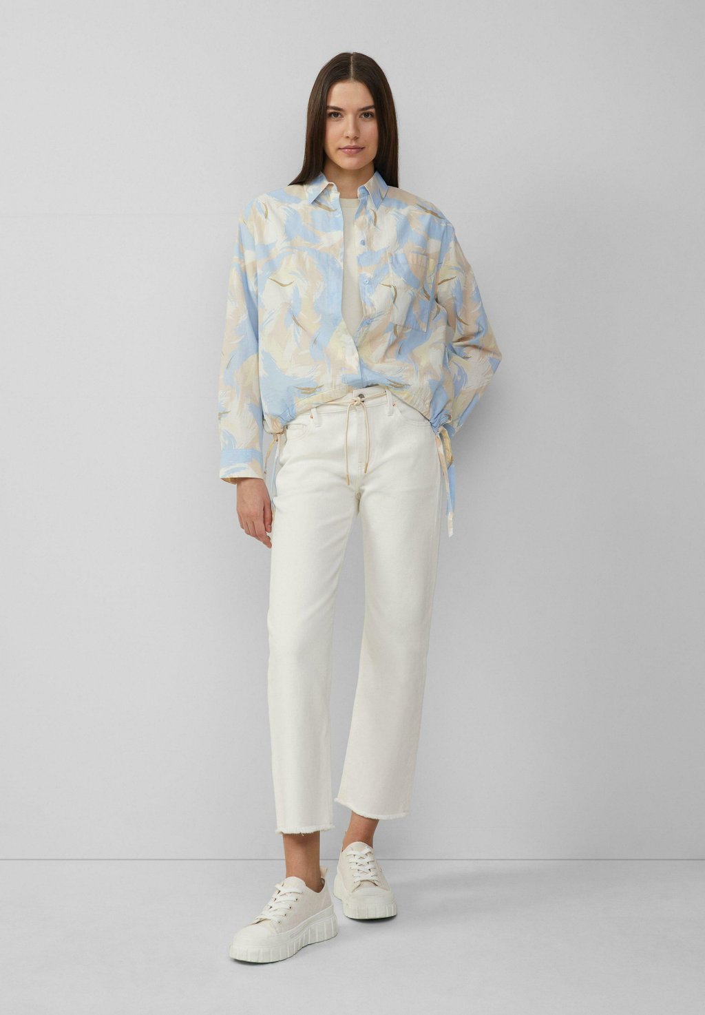 Блузка на пуговицах GEMUSTERTE MIT TUNNELZUG AM SAUM s.Oliver, бежевый 5 657₽