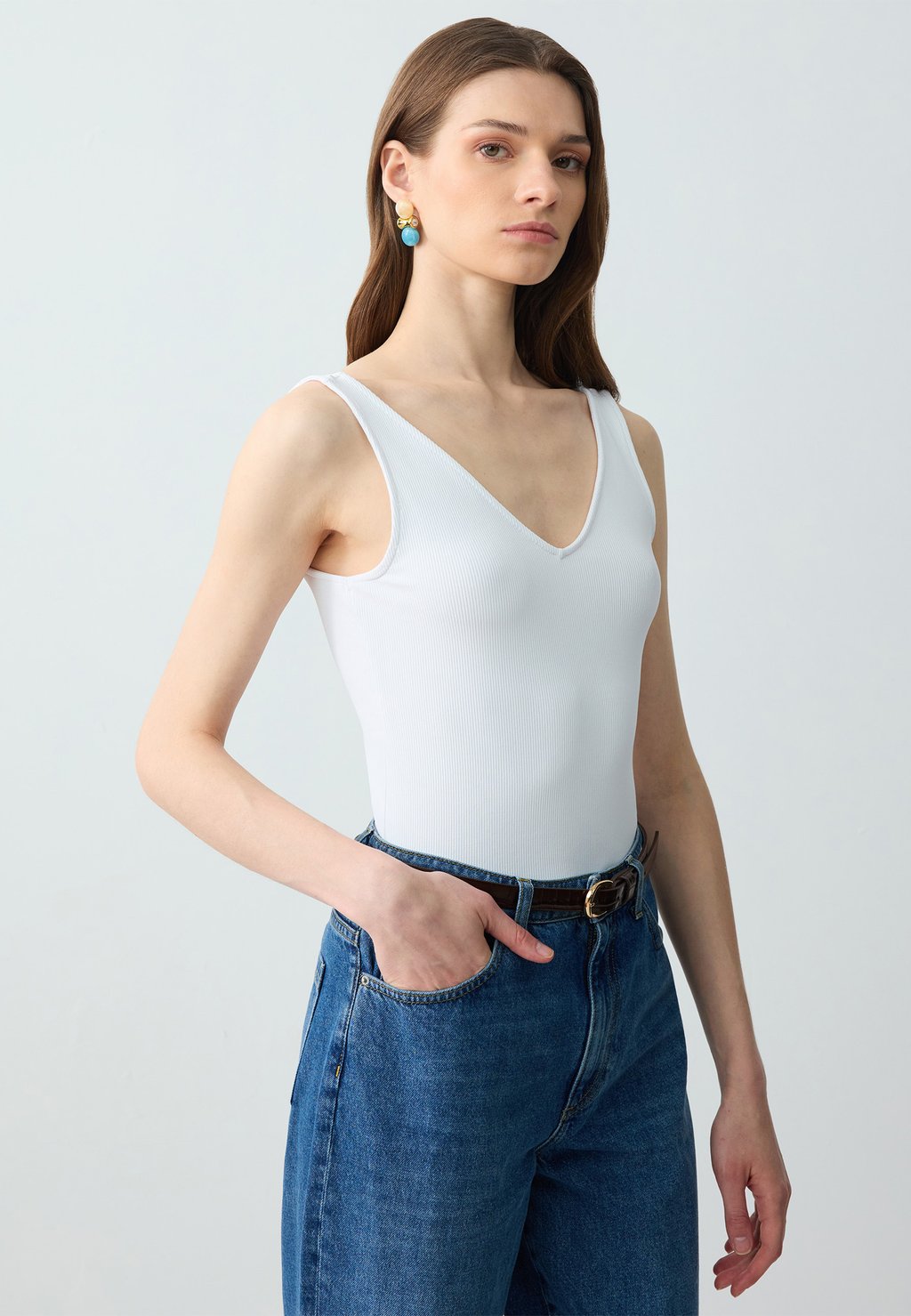 Топ SLIM FIT V-NECK TANK Jimmy Key, белый 4 135₽