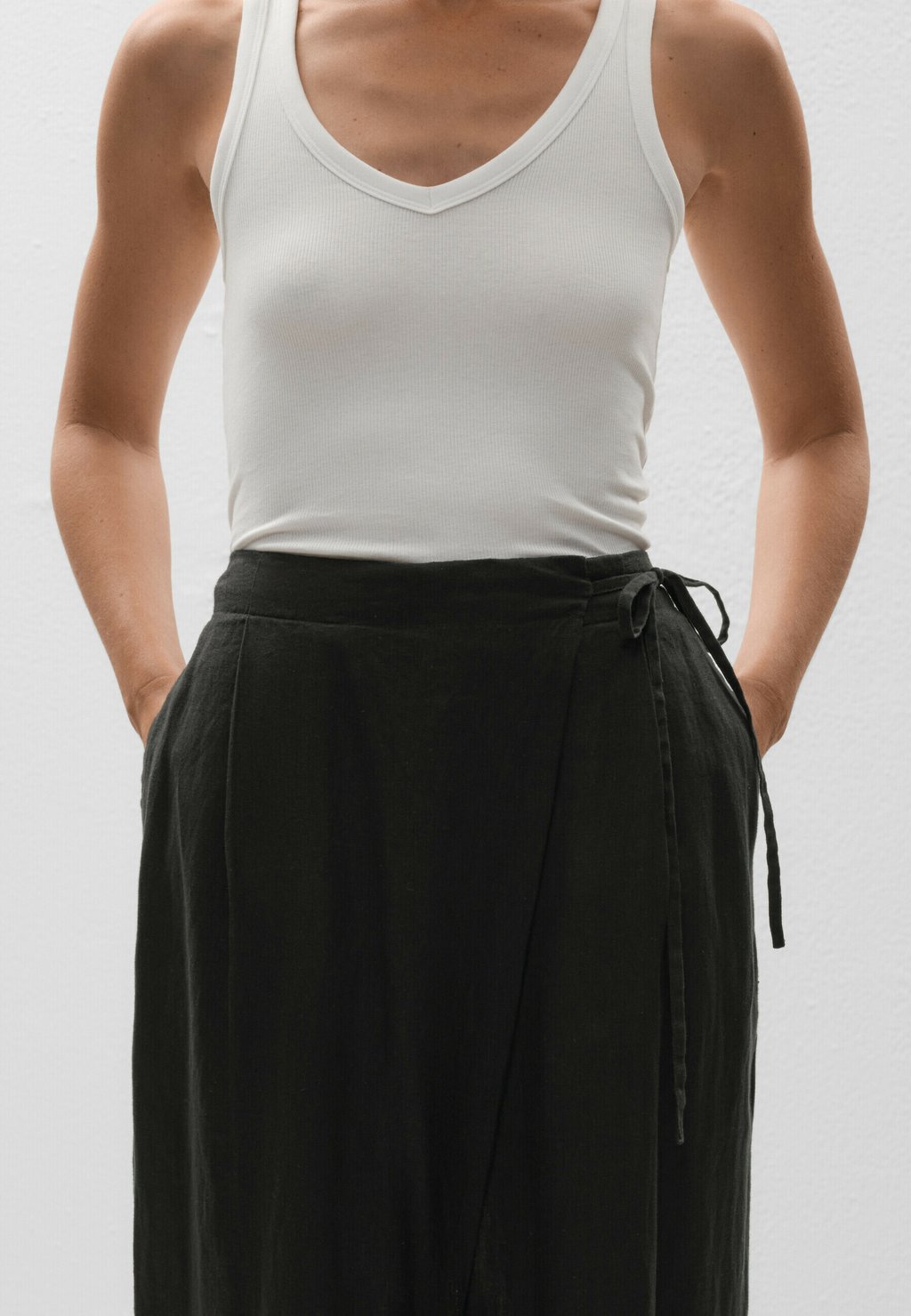 Брюки LINEN WIDE STRAIGHT-LEG WITH WRAP SARONG OYSHO, черный 5 389₽