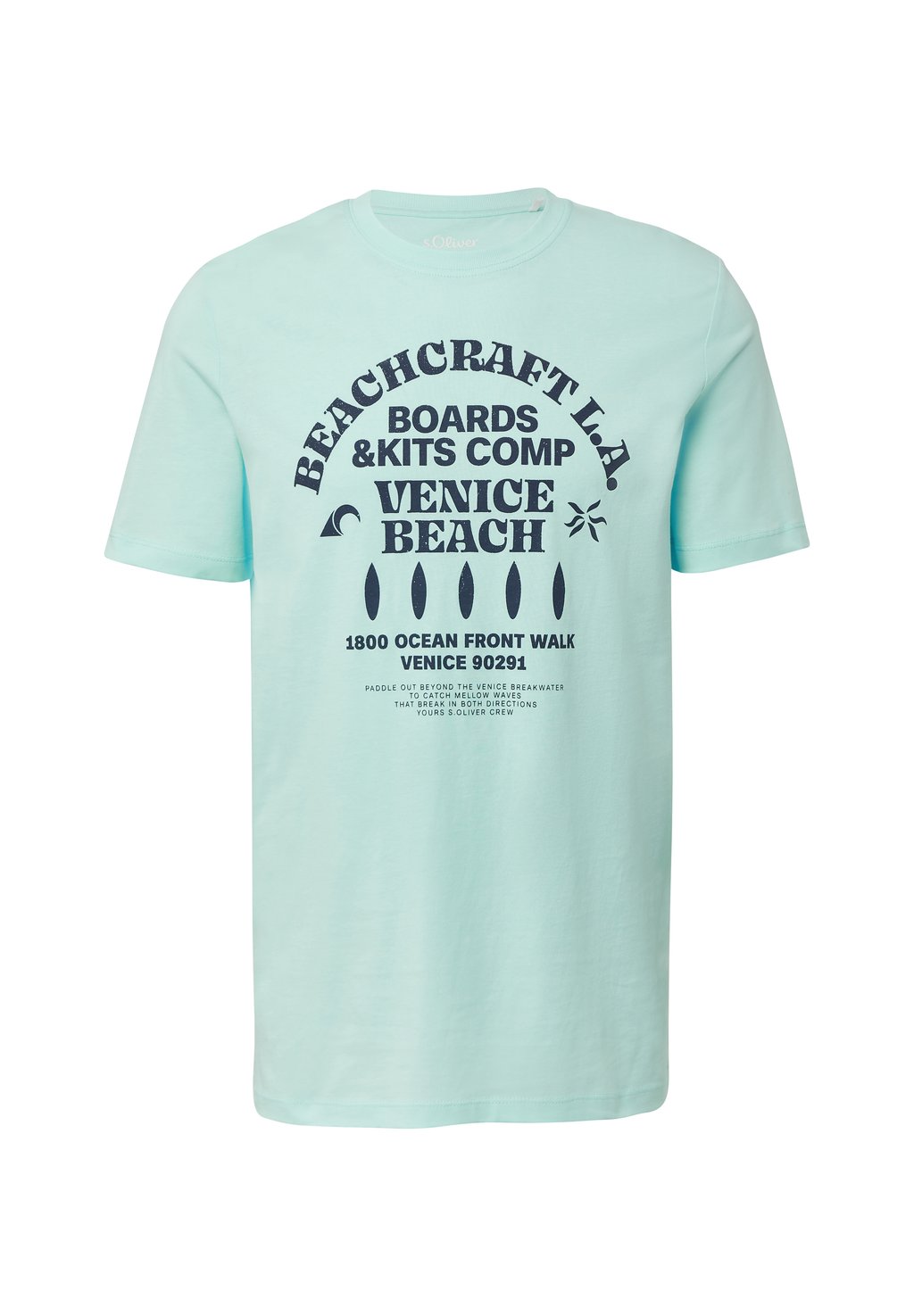 Футболка с принтом MIT CREWNECK UND ARTWORK s.Oliver, бирюзовый