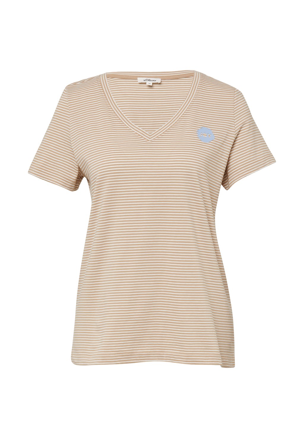 Футболка с принтом MIT V-AUSSCHNITT UND -DETAIL s.Oliver, бежевый