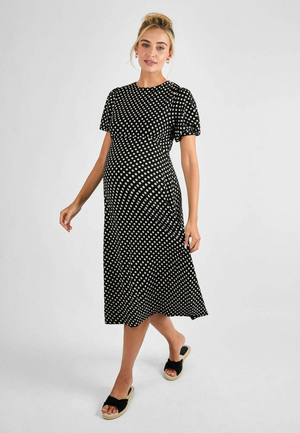 Платье из джерси MATERNITY FIT - DITSY PUFF SLEEVE MIDI JoJo Maman Bébé, черный