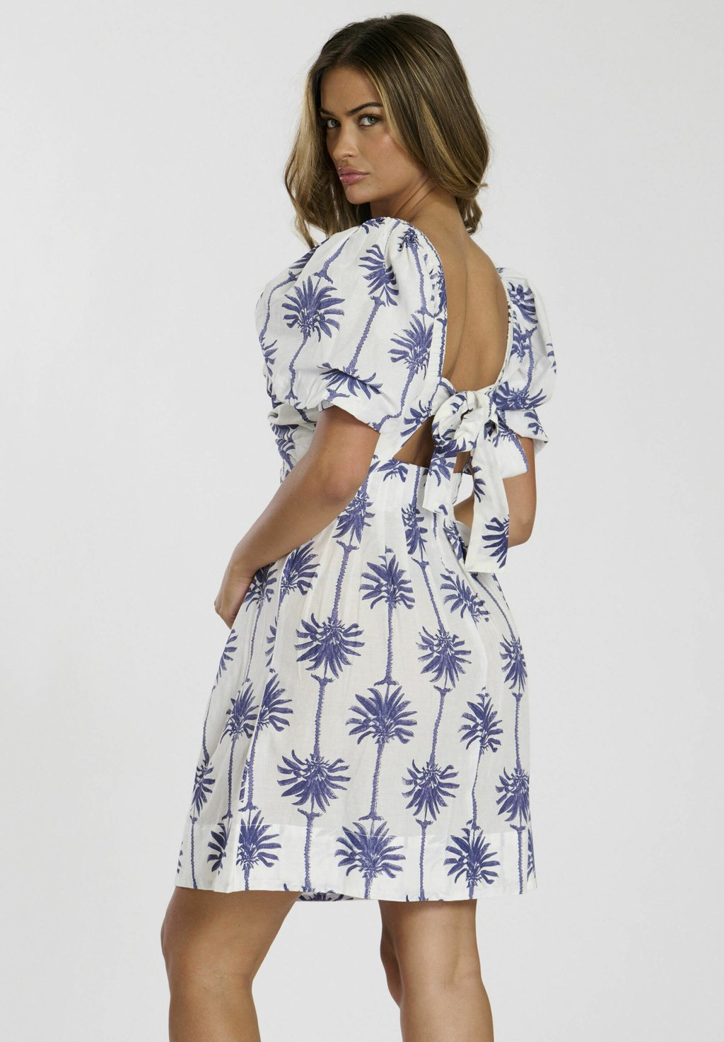 Повседневное платье TWIST FRONT PUFF SLEEVE PRINTED South Beach, белый
