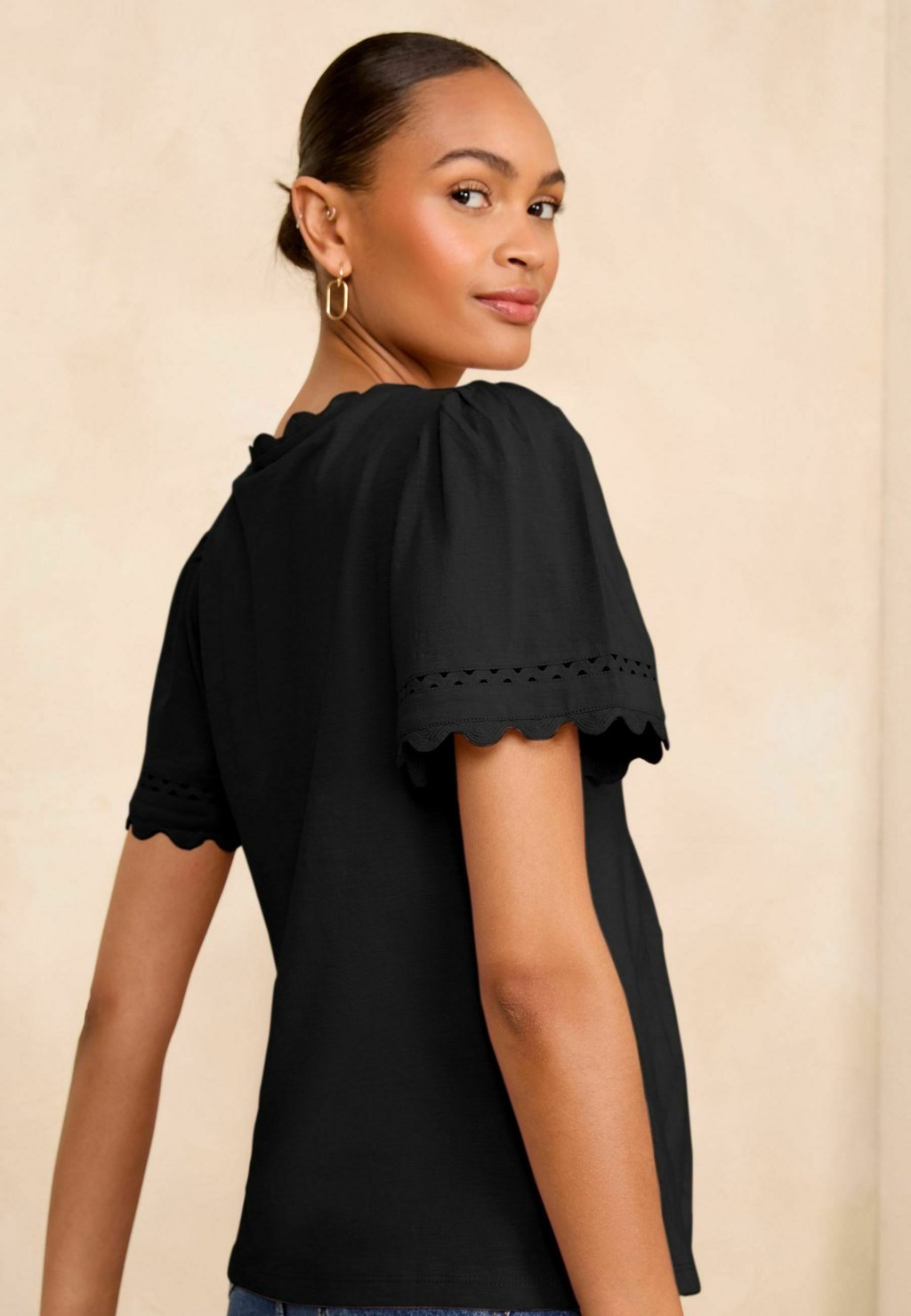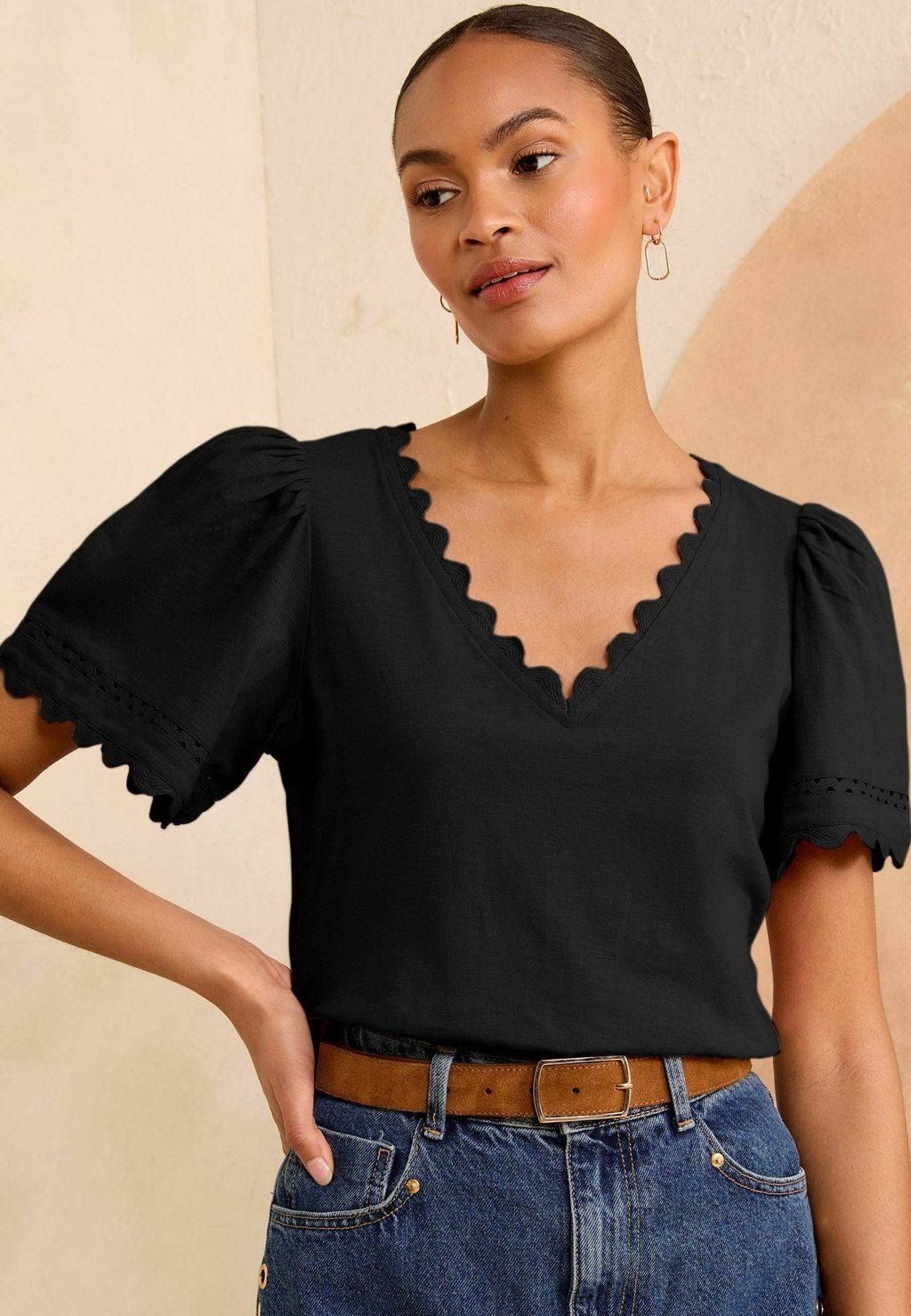 Футболка с принтом REGULAR FIT-SCALLOP V-NECK Love & Roses, черный