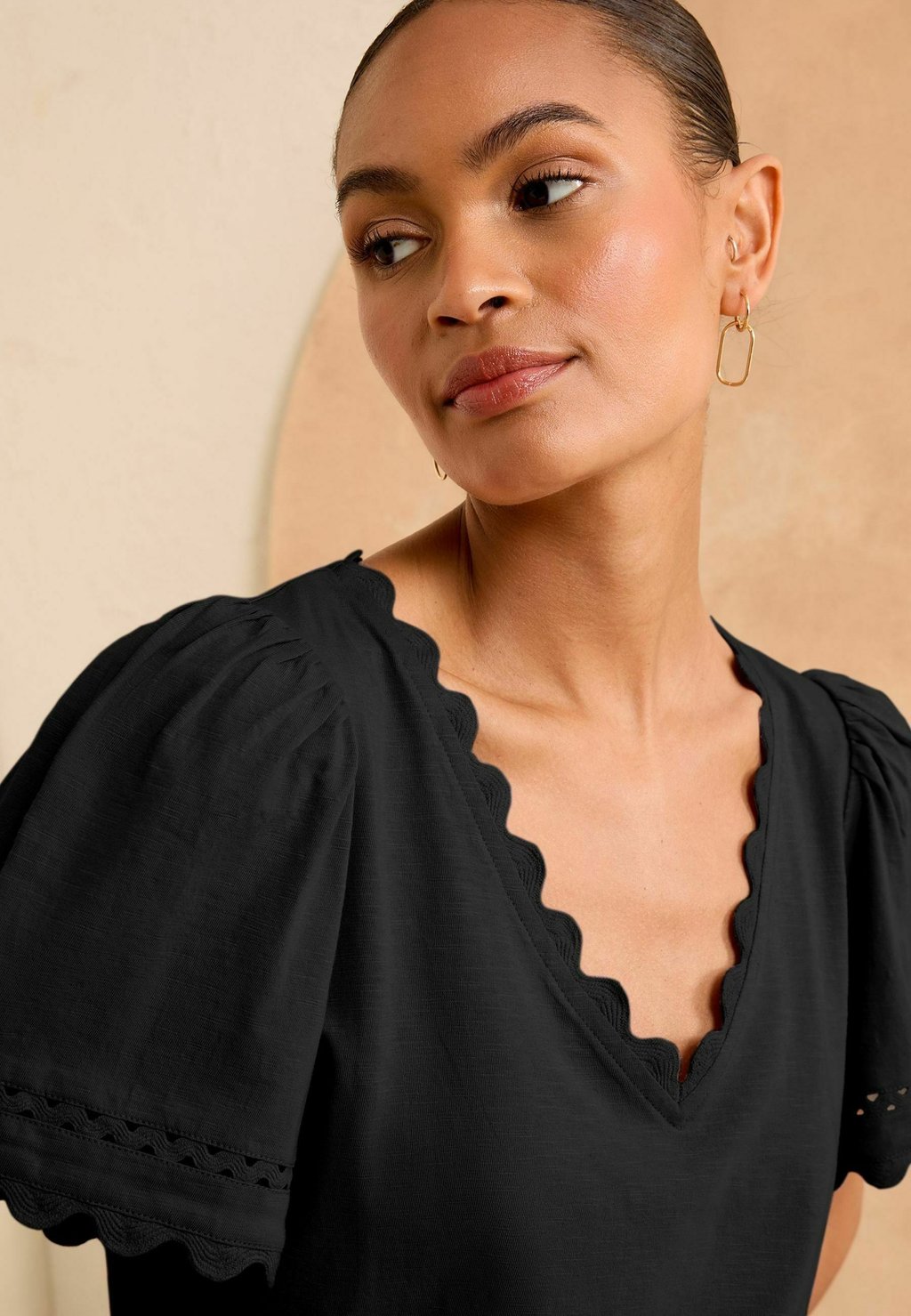 Футболка с принтом REGULAR FIT-SCALLOP V-NECK Love & Roses, черный 4 856₽