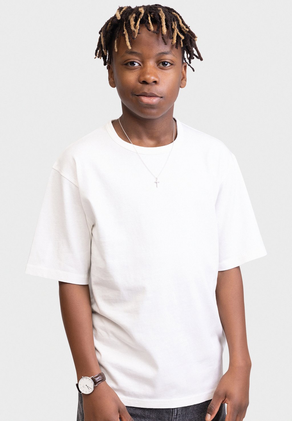 Рост модели: Человек на фото имеет рост 150 см и носит размер 152.