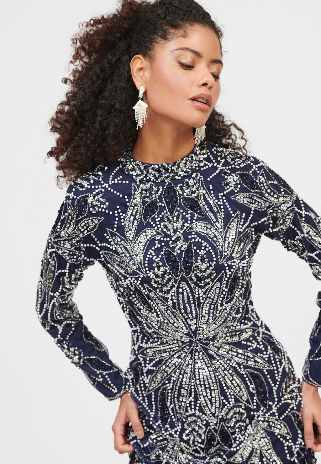 Детали: пайетки, нижняя юбка, аппликации из камней.