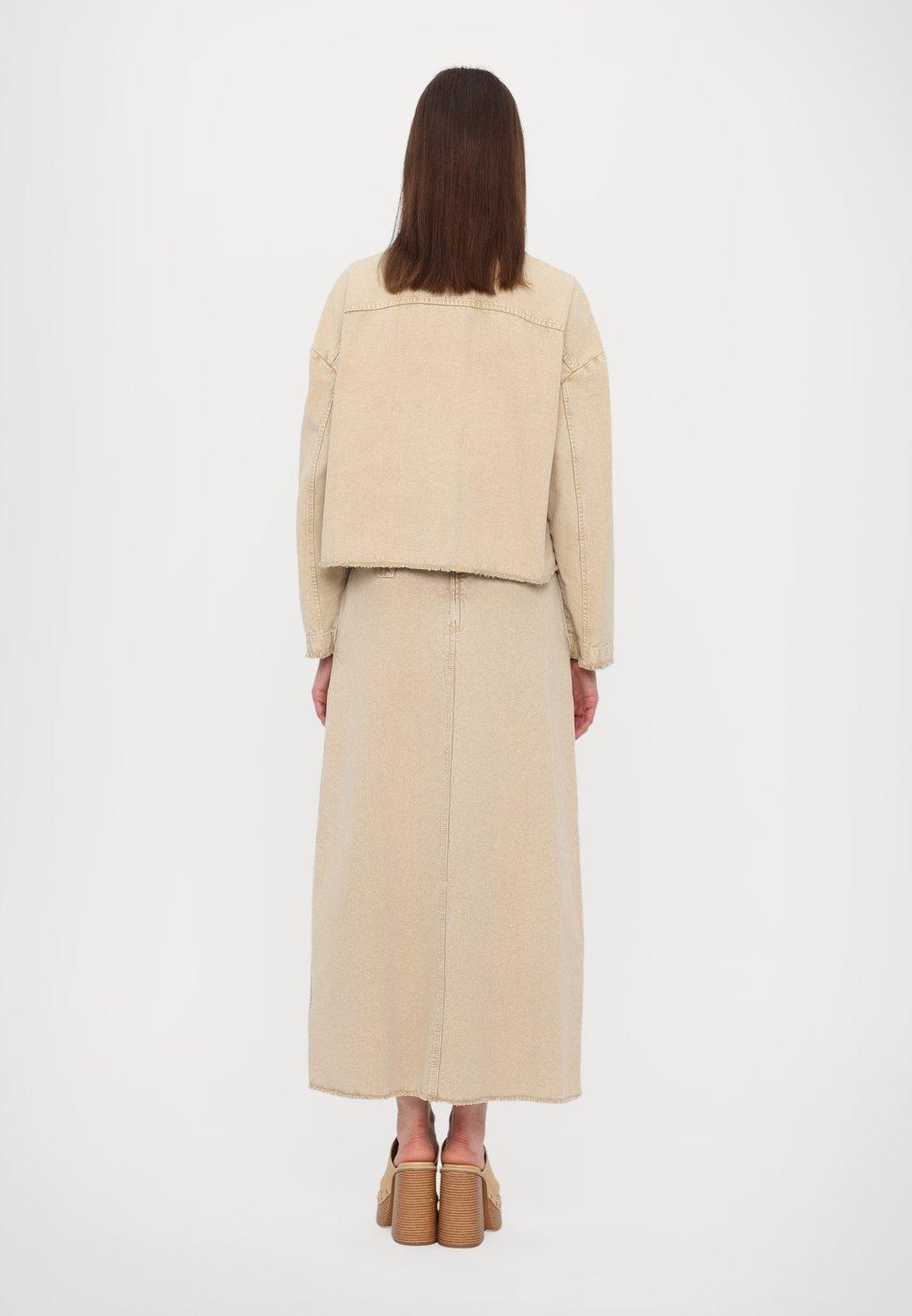 Эта куртка в уличном стиле с выцветшей отделкой и бахромой напоминает классическую рабочую одежду.