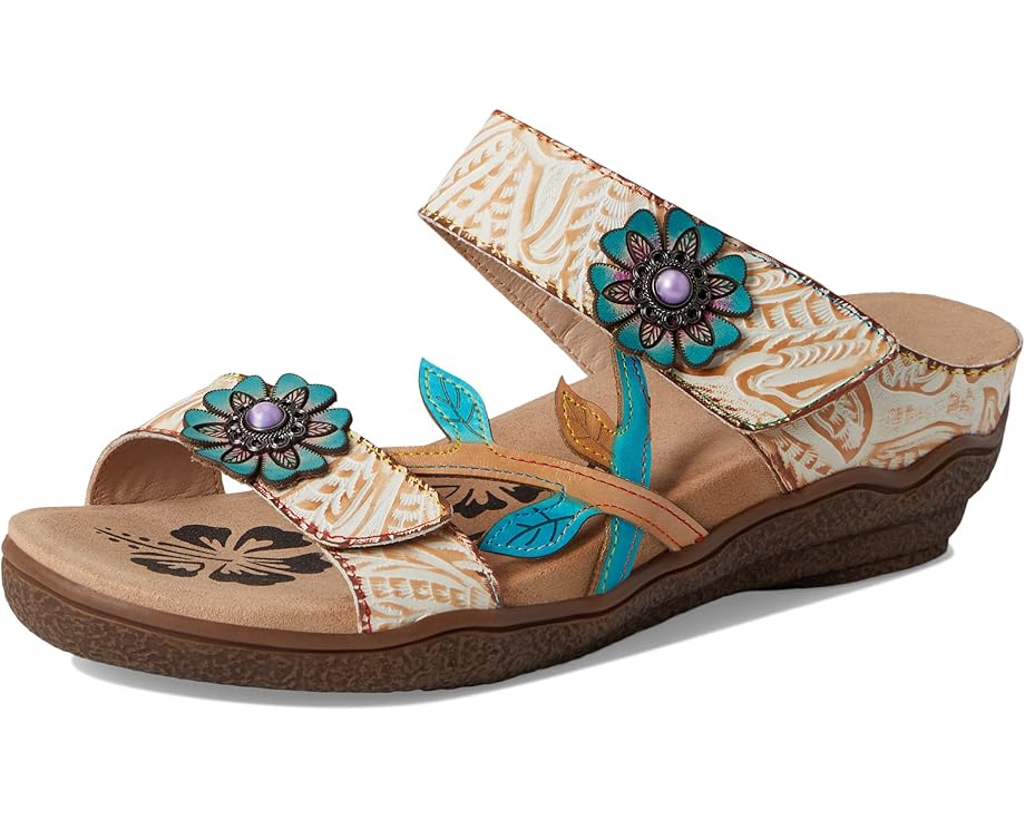 Позвольте сандалиям L'Artiste by Spring Step Aymee Flat Sandals адаптироваться к вашему уникальному вкусу в стиле. Обувь без застежек имеет кожаную конструкцию верха с деталями в виде стеблей цветов и блестящими кабошонами из драгоценных камней.