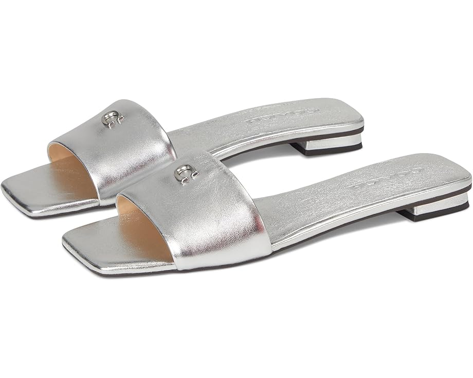 Сандалии COACH Sculpted C Metallic Leather Flat Sandals, серебряный