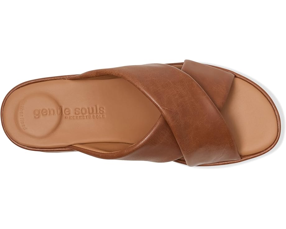 Сандалии Gentle Souls by Kenneth Cole River имеют широкие кожаные ремешки, перекрещивающиеся над мыском, дышащую кожаную подкладку и кожаную стельку. Удобные сандалии с фирменной многослойной системой комфорта PORON.