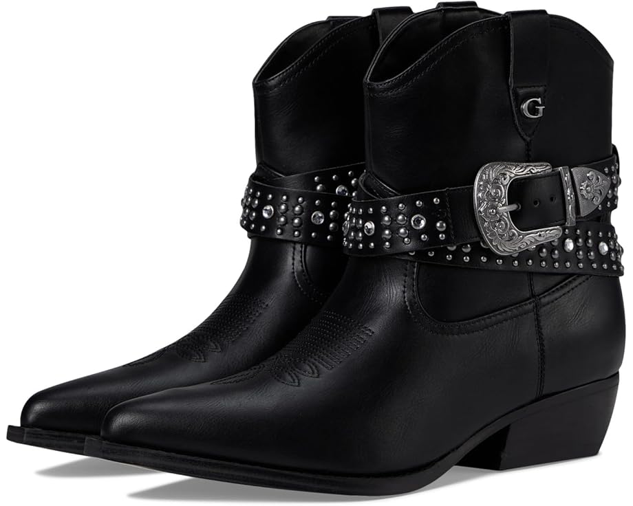 Gwlansly by Guess придает нотку гламура этим ботильонам в стиле вестерн. С заклепками на ремешках и украшенной пряжкой этот возвышенный образ имитирует вестерн-глэм. Ботильоны до середины голени имеют синтетический верх, синтетическую резиновую подкладку, синтетический носок и мягкую стельку. Модный блочный каблук обеспечивает идеальный подъем для шикарного и универсального образа.