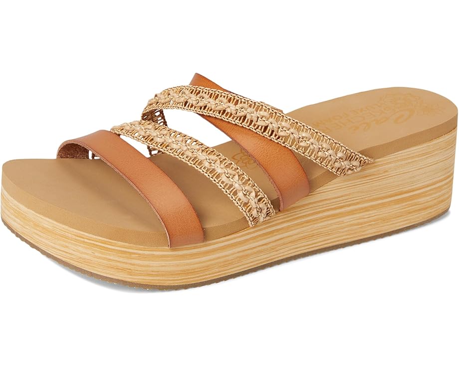 Ощутите удобство ношения и подчеркните стильный образ в сандалиях SKECHERS Summers. Сандалии с ремешками без застежек имеют верх из искусственной кожи, подкладку из синтетической резины, мягкую стельку Luxe Foam и легкую межподошву. Клиновидный каблук подчеркивает стиль, а гибкая резиновая подошва обеспечивает дополнительную устойчивость при ходьбе.