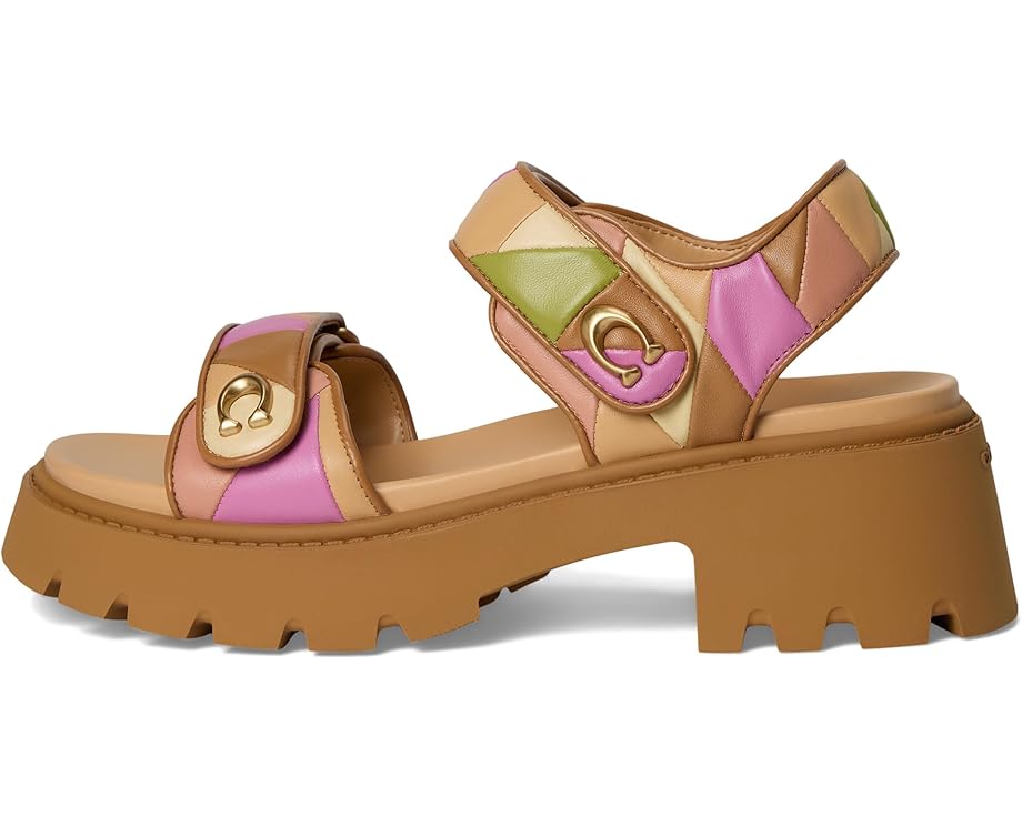 Туфли COACH Brynn Platform Quilted Patchwork Leather Sandals, цвет Honey Brown/Multi