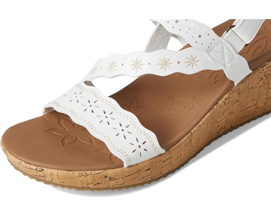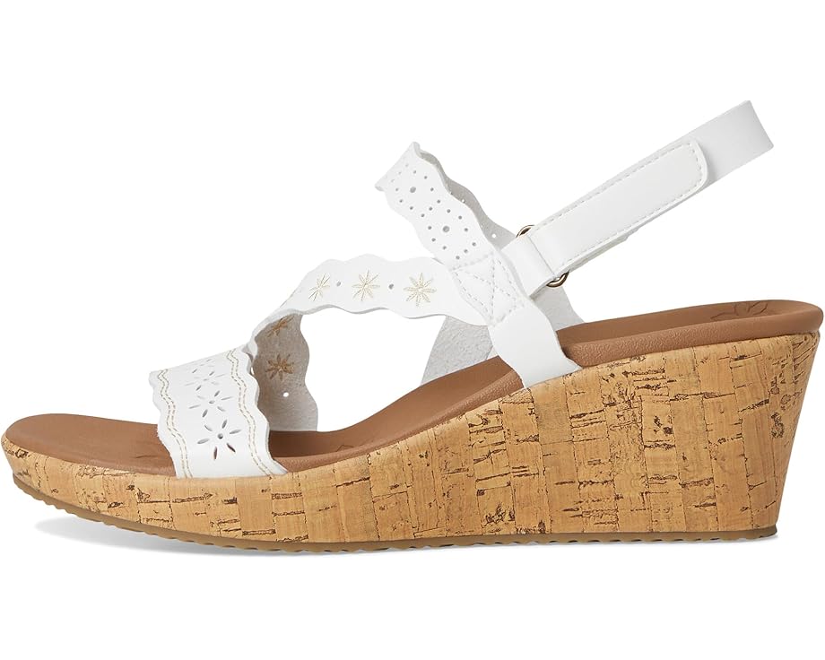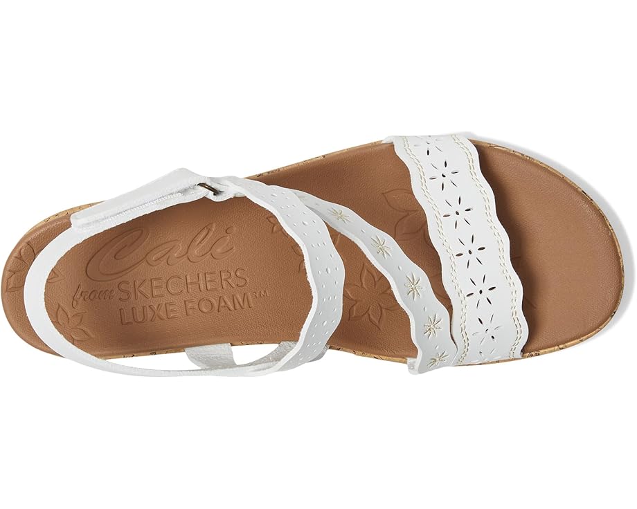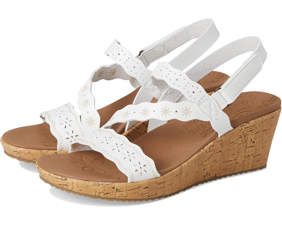 SKECHERS Beverlee - Cherished Aura созданы для движения. Эти босоножки на танкетке из веганского материала с ремешками имеют вышитый и вырезанную лазером синтетическую верхнюю часть с регулируемым задним ремешком и амортизирующей стелькой Luxe Foam. Они поставляются с открытым круглым носком, танкеткой и без застежек.
