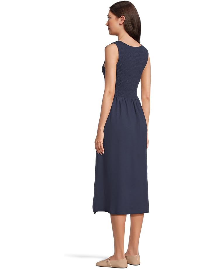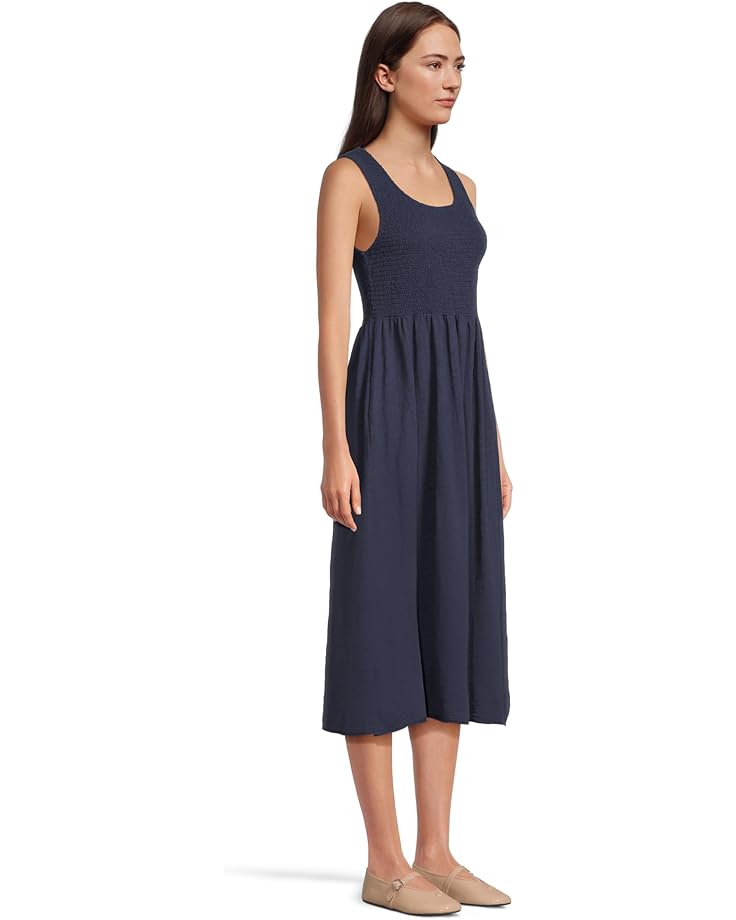 Платье-майка Mod-o-doc Smocked Tank Midi Dress, изготовленное из хлопчатобумажной марлевой ткани, которая обеспечивает превосходный комфорт и воздухопроницаемость, подходит как для повседневных, так и для официальных мероприятий. Сборки спереди и сзади на груди обеспечивают приятную посадку. Это хлопковое платье с круглым вырезом, прямым подолом и безрукавным дизайном. От деловых мероприятий до повседневных вечеринок, выразите свой стиль в этом платье-миди.