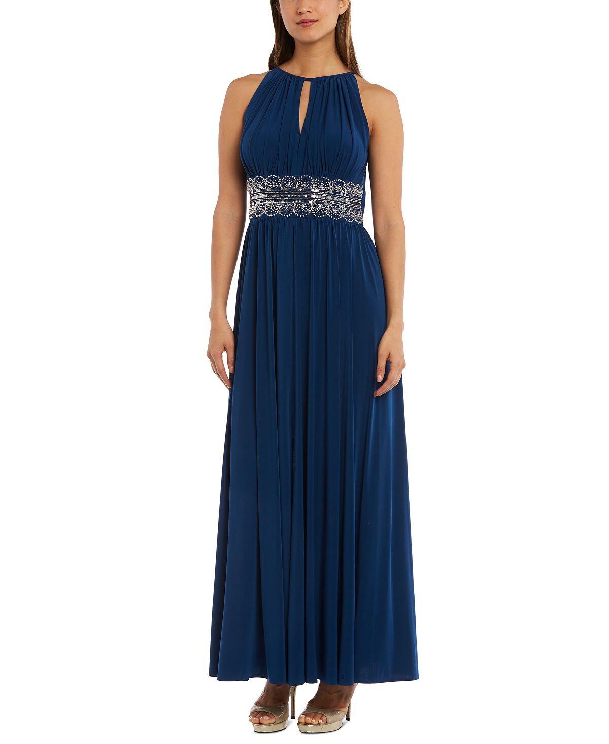 Заявите о себе потрясающий стиль в этом вечернем платье от R&M Richards с сексуальным узором «капля», расшитой бисером ампирной талией и знойной юбкой с разрезом спереди.