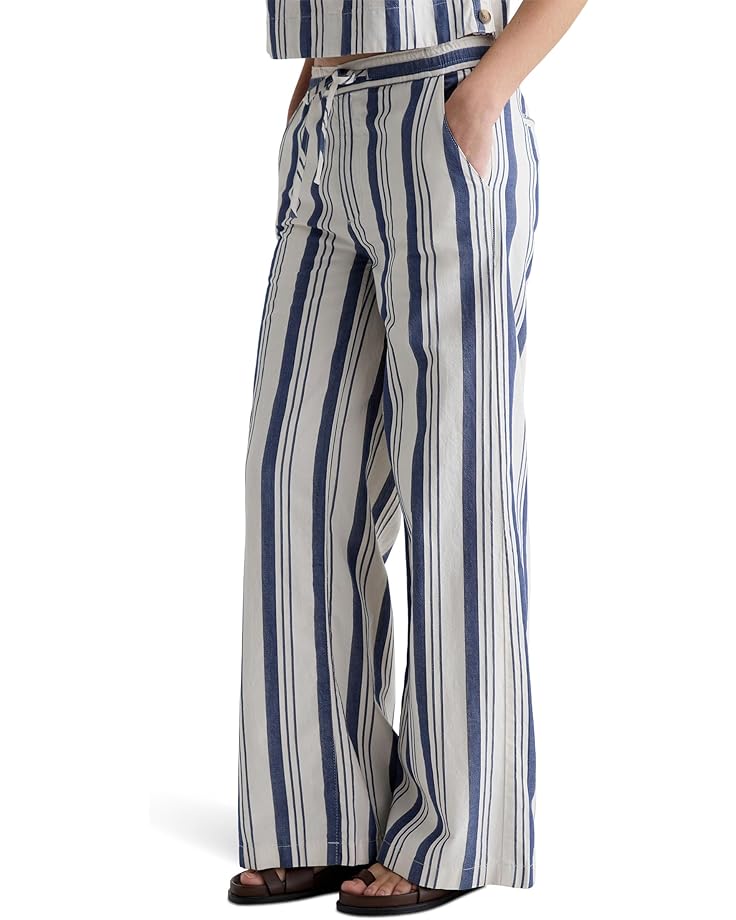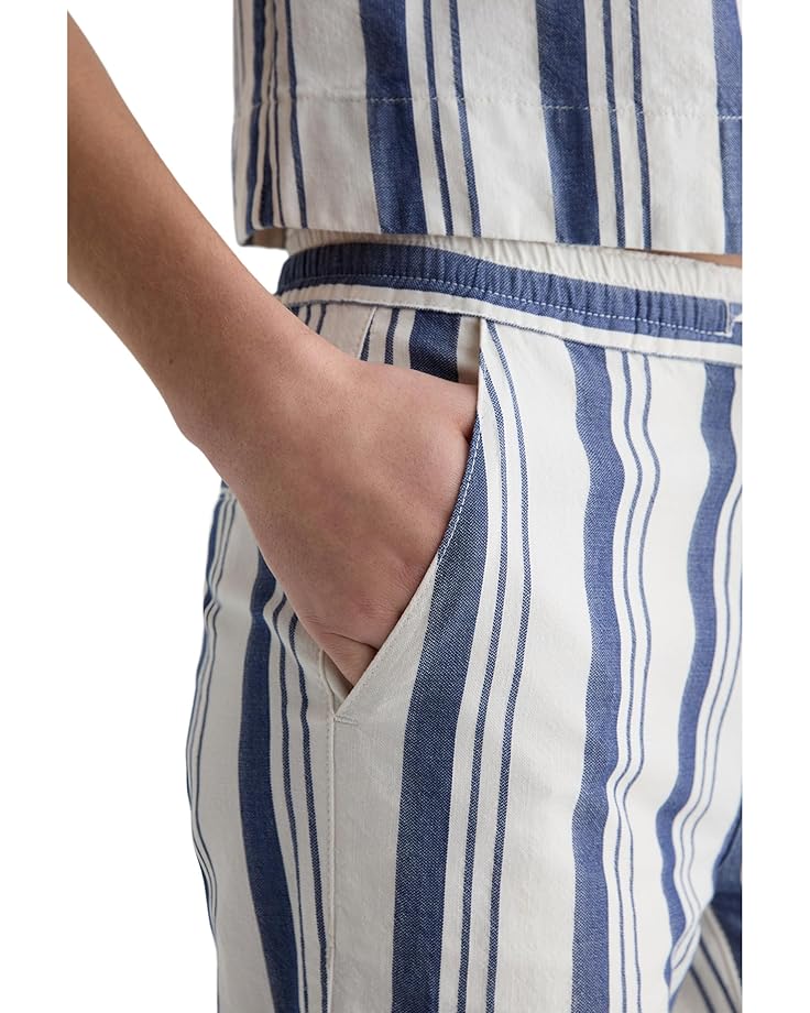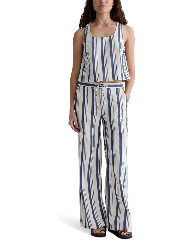Брюки AG Jeans Carolyn Pull On Wide Leg in Line Up Pant с эластичным поясом и шнурком. Изготовлены из льняной смеси, которая одновременно легкая и удобная для непринужденного шикарного летнего образа. Имеет среднюю посадку, два боковых кармана для рук и два задних кармана.
