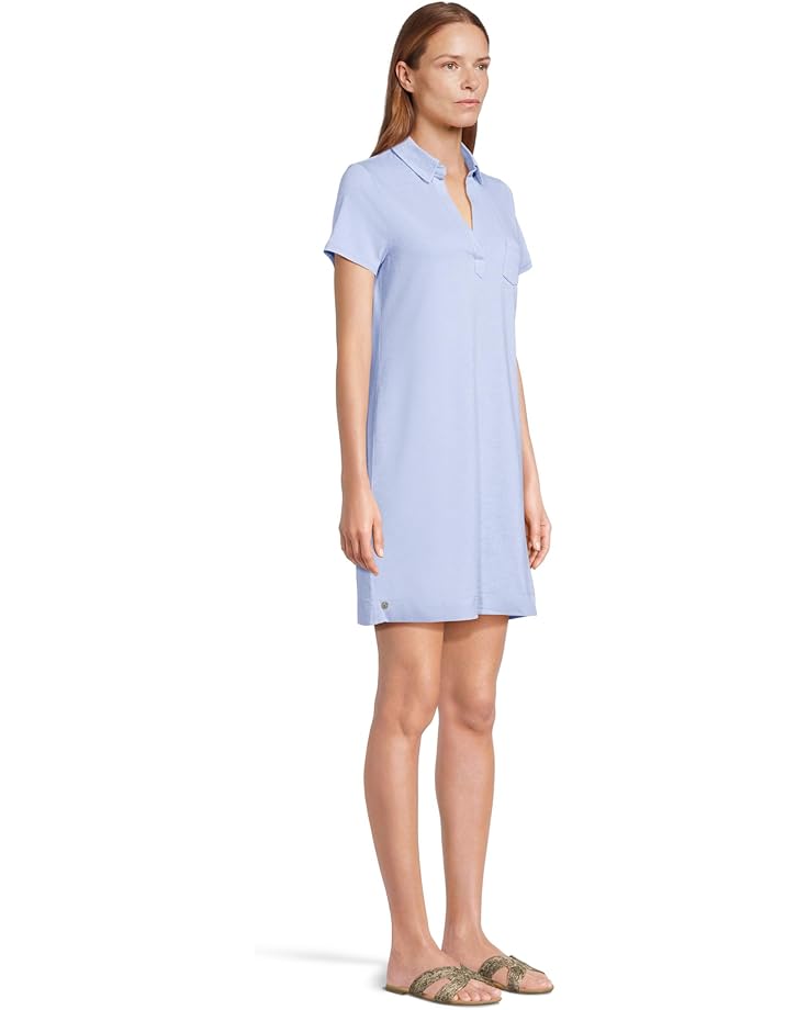 Выразите свой стиль, надев удобное платье Lilly Pulitzer Dune Upf 50+ с коротким рукавом. Оно имеет V-образный вырез с воротником, короткие рукава, перекрывающуюся планку и небольшой накладной карман на левой груди.