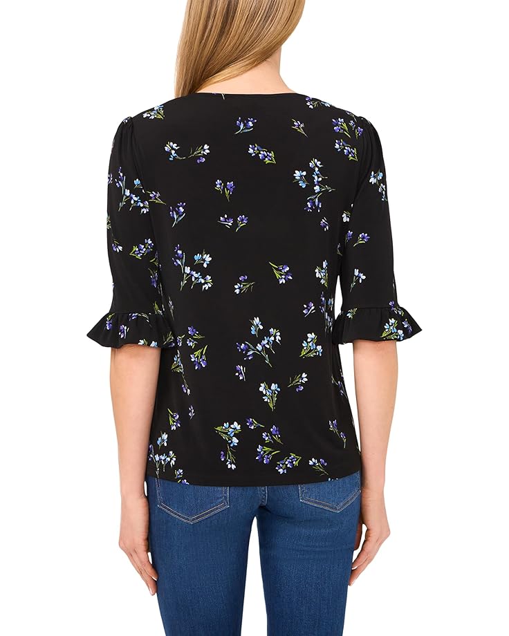 Топ CeCe V-Neck Elbow Ruffled Sleeve Knit Top, цвет Rich Black