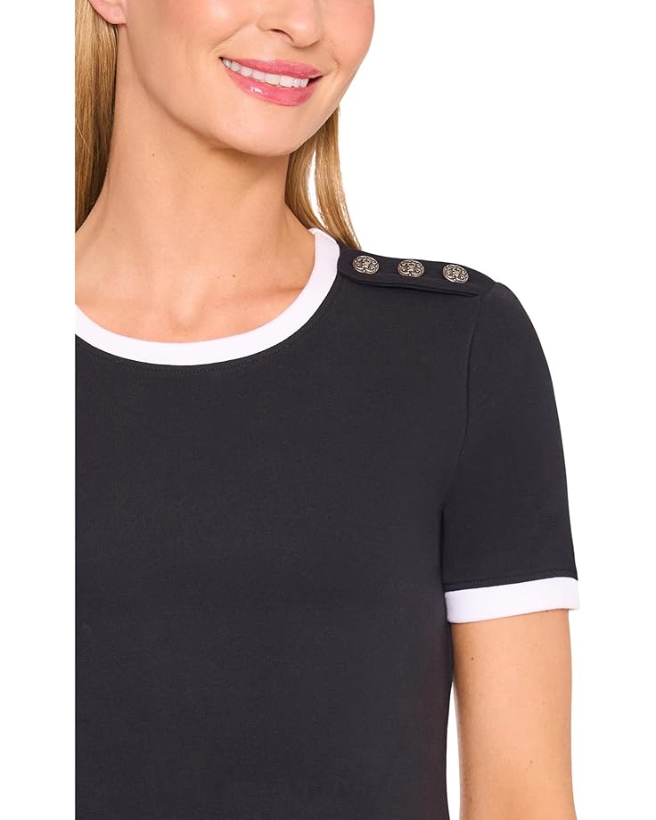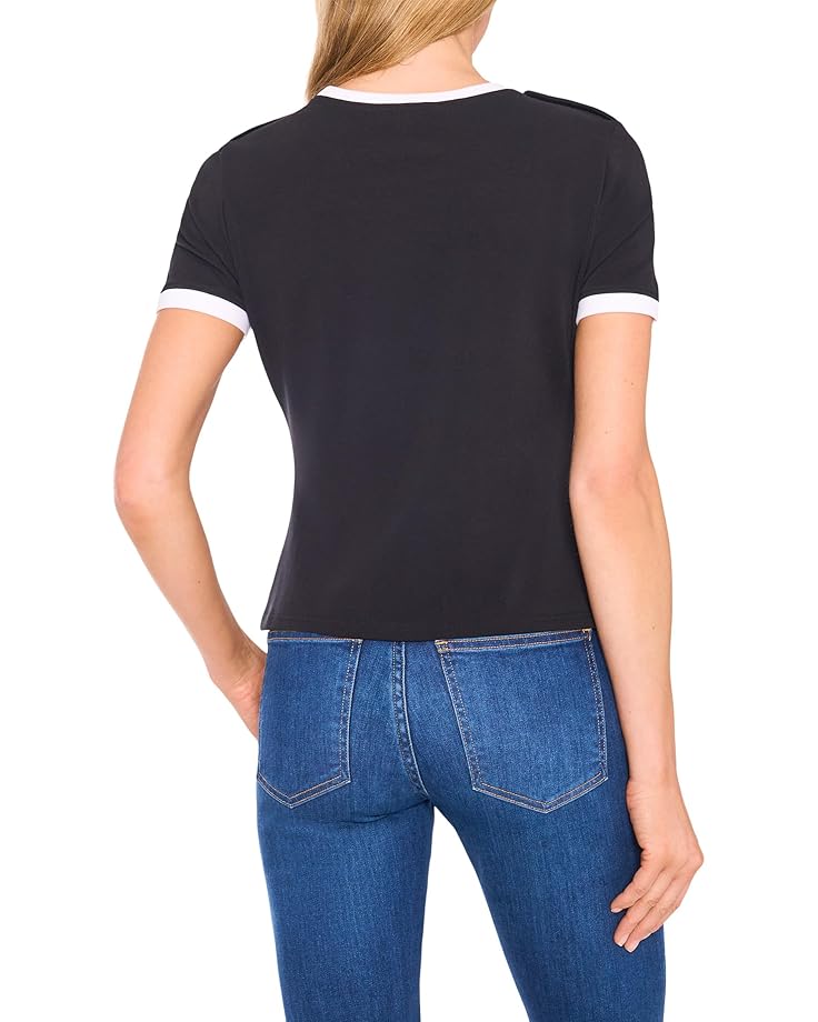 Футболка CeCe Crest Button Detail Baby Tee, цвет Rich Black