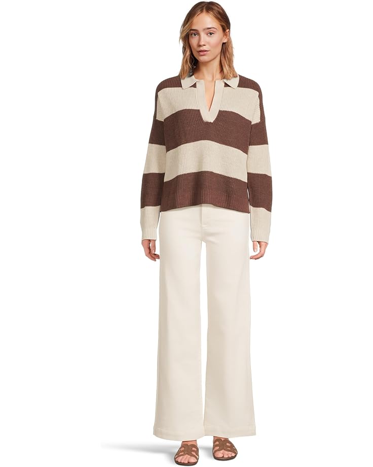 Свитер Faherty Miramar Linen Polo, цвет Cocoa Rugby Stripe