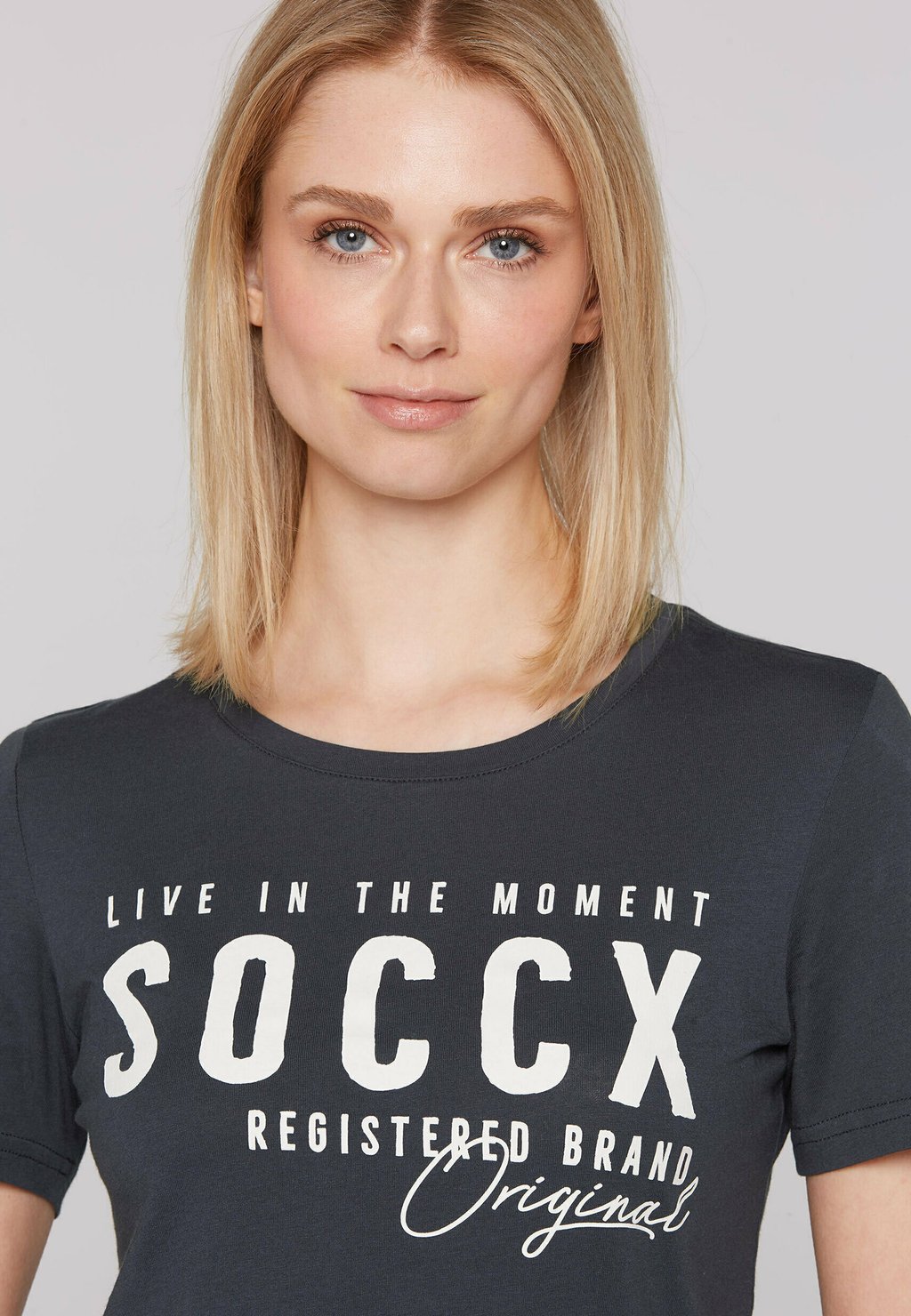 Футболка с принтом MIT RUNDHALSAUSSCHNITT UND LOGO Soccx, темно-синий 4 599₽