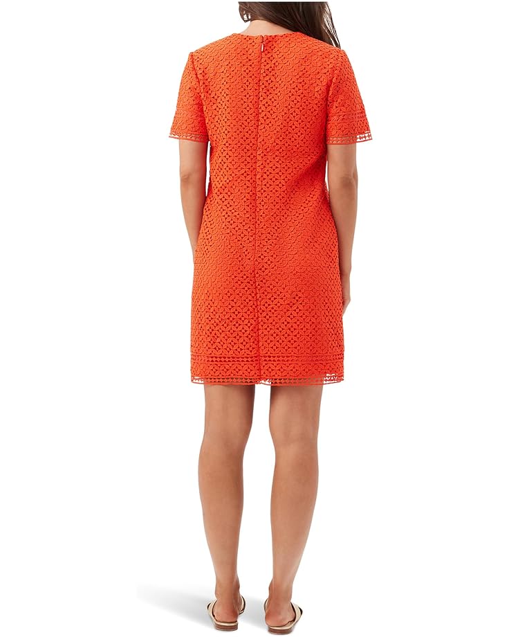 Платье Trina Turk Kimasu — это кружевное платье с высоким кроем, которое легко надевать как сверху, так и снизу с простым силуэтом футболки. Оно имеет вырез-лодочку, короткие рукава, геометрическую отделку кружевом по всей поверхности и застежку-молнию сзади.