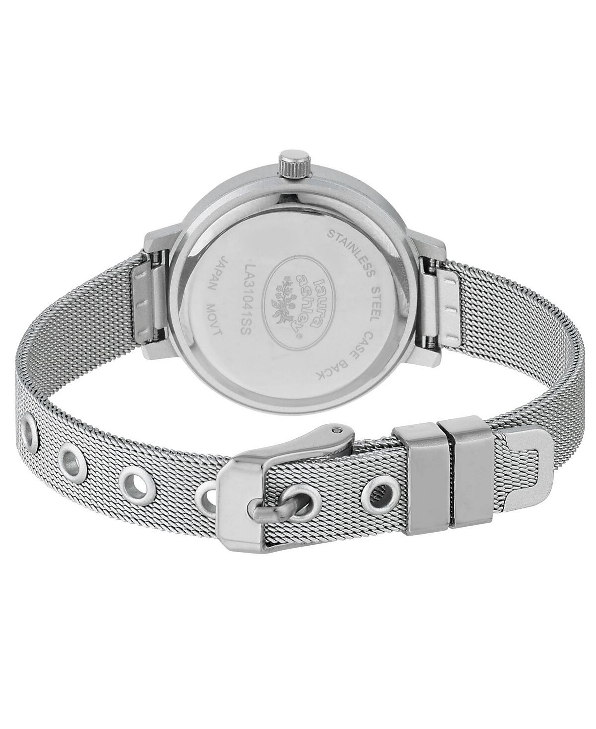 Часы с блестящим циферблатом и серебристой сеткой Laura Ashley, серебро