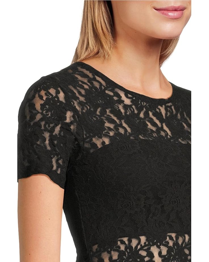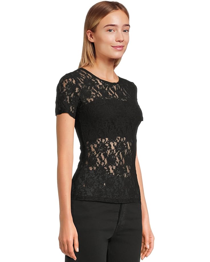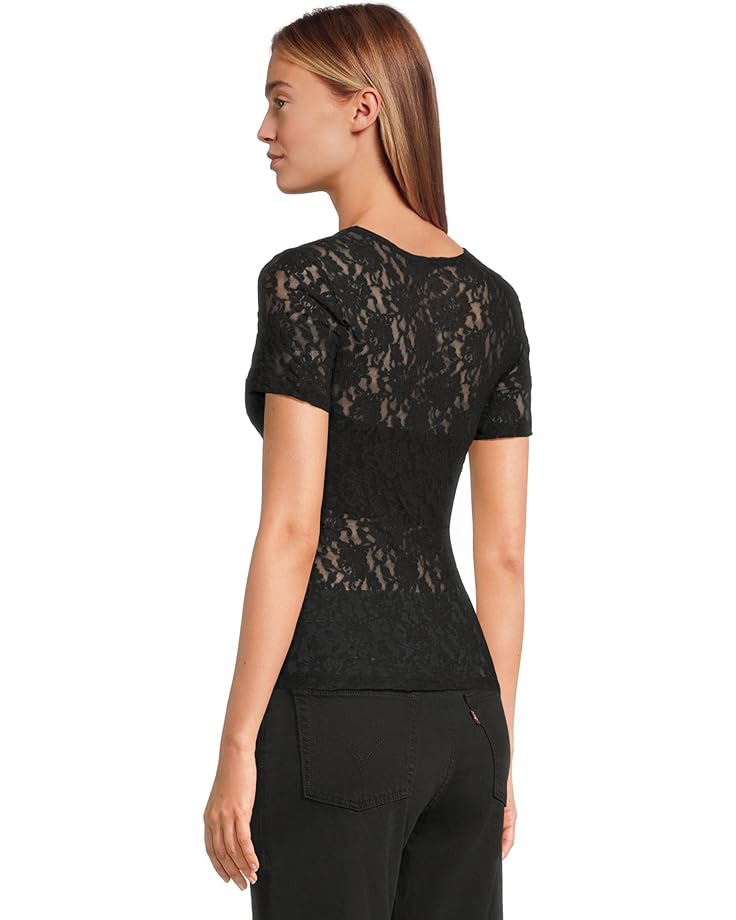 Топ Hanky Panky Signature Lace Short Sleeve Top, черный