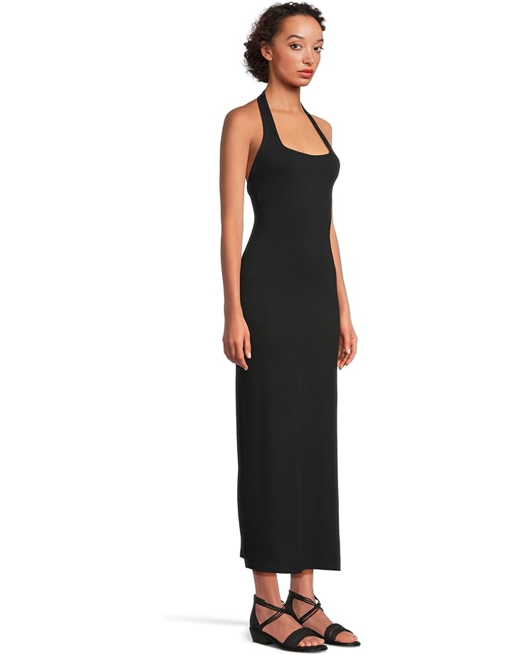 Выглядите горячо и сексуально в платье L*Space London. Это платье с вырезом халтер, без рукавов, бюстгальтером-полкой, ребристым платьем с закругленным квадратным вырезом и открытой спиной. Оно идет с отделкой полосами по всей поверхности и боковыми разрезами.