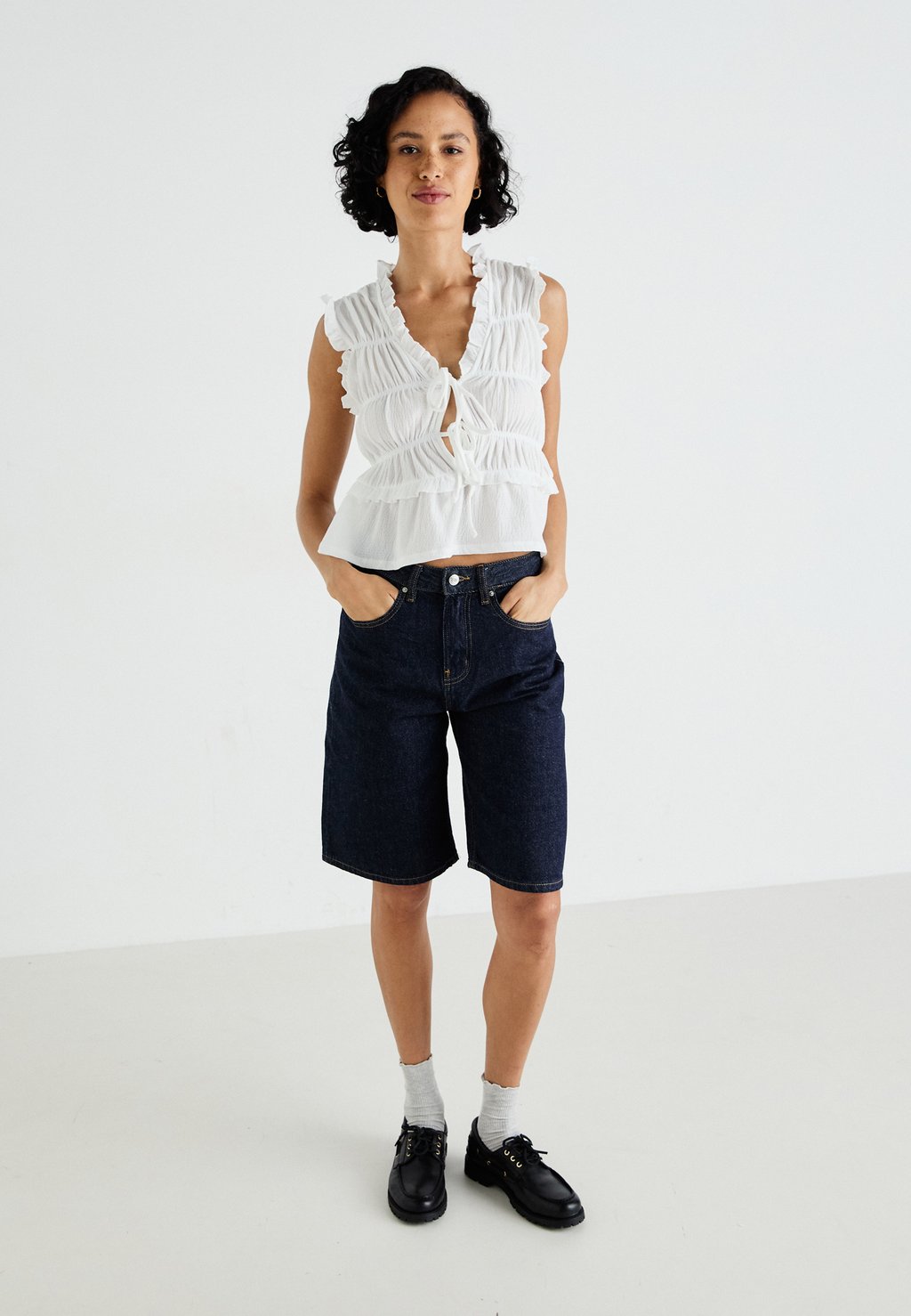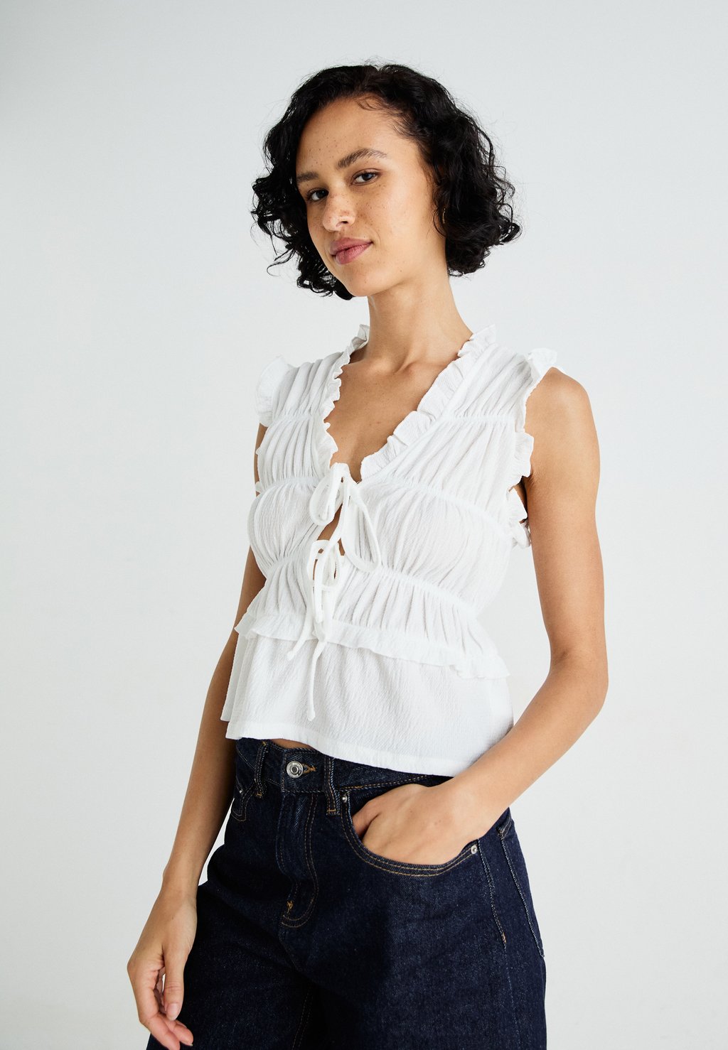 Топ FRILL TIE FRONT Gina Tricot, слоновая кость 4 393₽