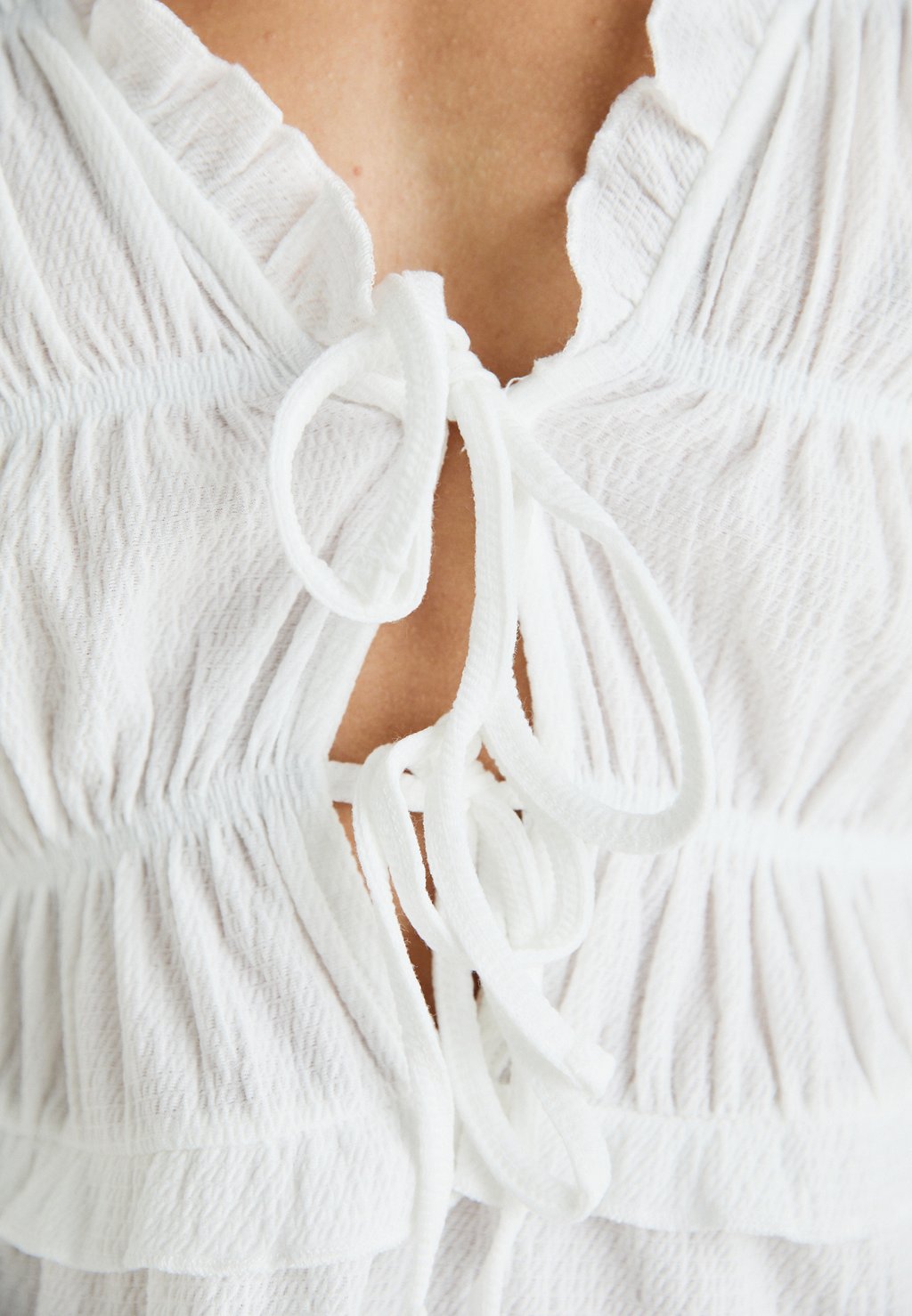 Топ FRILL TIE FRONT Gina Tricot, слоновая кость