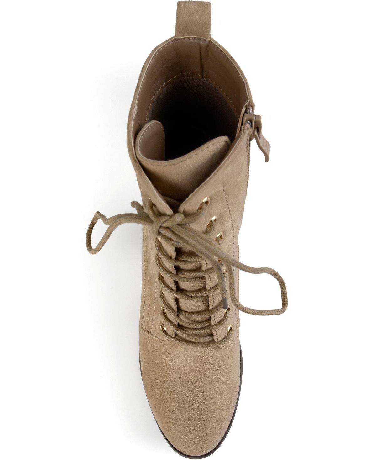 Наш взгляд на ботинки в стиле милитари — коллекцию Baylor by Journee. Этот стильный стиль включает верх из мягкой искусственной кожи, возвышающийся над лодыжками, подчеркнутый классической застежкой на шнуровке. Наборный блочный каблук, широкая стелька и мягкая стелька дополняют дизайн.