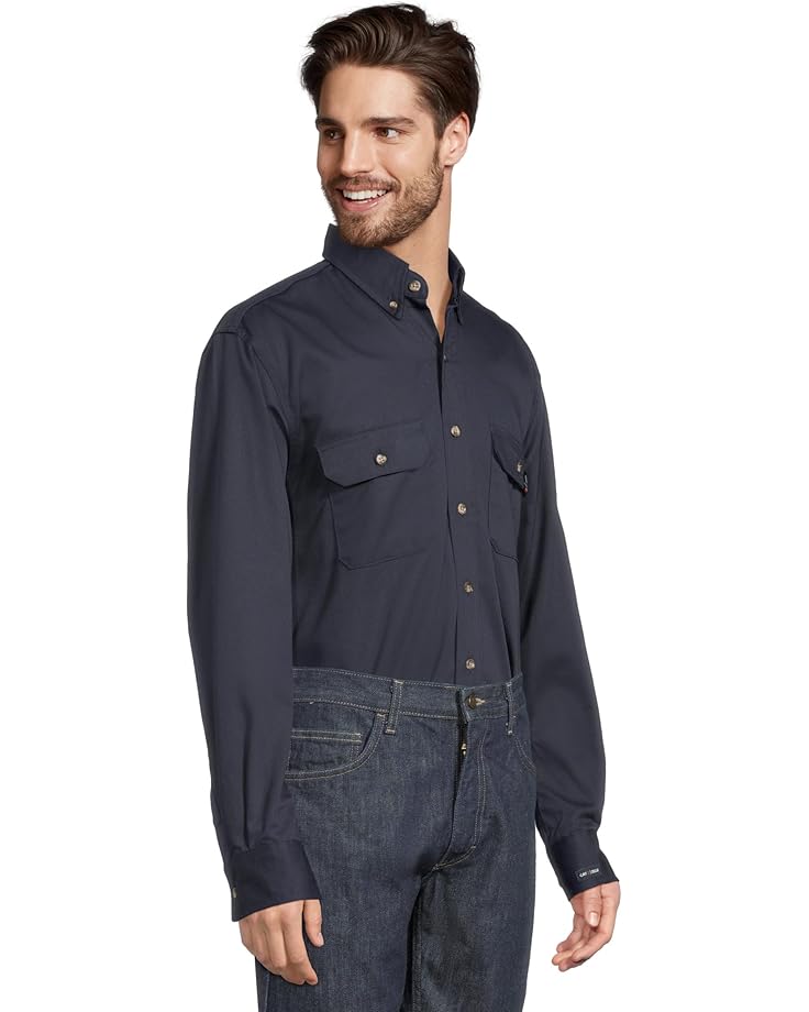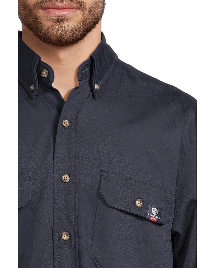 Рубашка Tyndale FRC Button-Down с застежкой на пуговицы спереди и воротником на пуговицах, манжетами на двух пуговицах и складками сзади с длинными концами, что позволяет носить ее заправленной. Изготовленная из хлопковой смеси, эта рубашка на пуговицах выводит ваш комфорт на новый уровень. Она имеет длинные рукава и прямой подол. Соответствует стандарту NFPA 2112, эта хлопковая рубашка имеет рейтинг дуги 9,5/CAT 2.