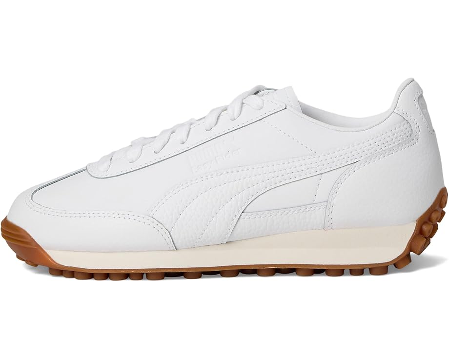 Шагайте стильно, играйте с комфортом! PUMA Kids Easy Rider имеет гладкий кожаный верх и дышащую нейлоновую подкладку для максимальной прочности и прохлады. Стелька EVA смягчает каждый шаг, а прочная резиновая подошва обеспечивает отличное сцепление для бесконечных приключений. Благодаря надежной шнуровке эти туфли идеально подходят для активных детей в дороге