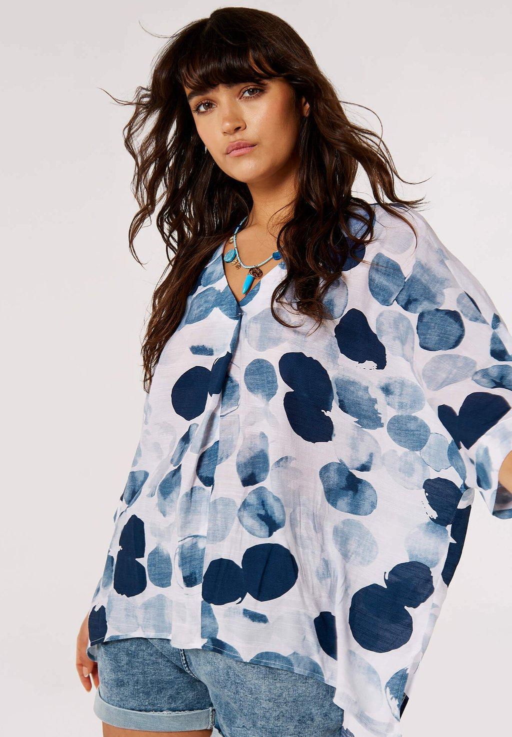 Блуза ABSTRACT PAINT PRINT Apricot, темно-синий