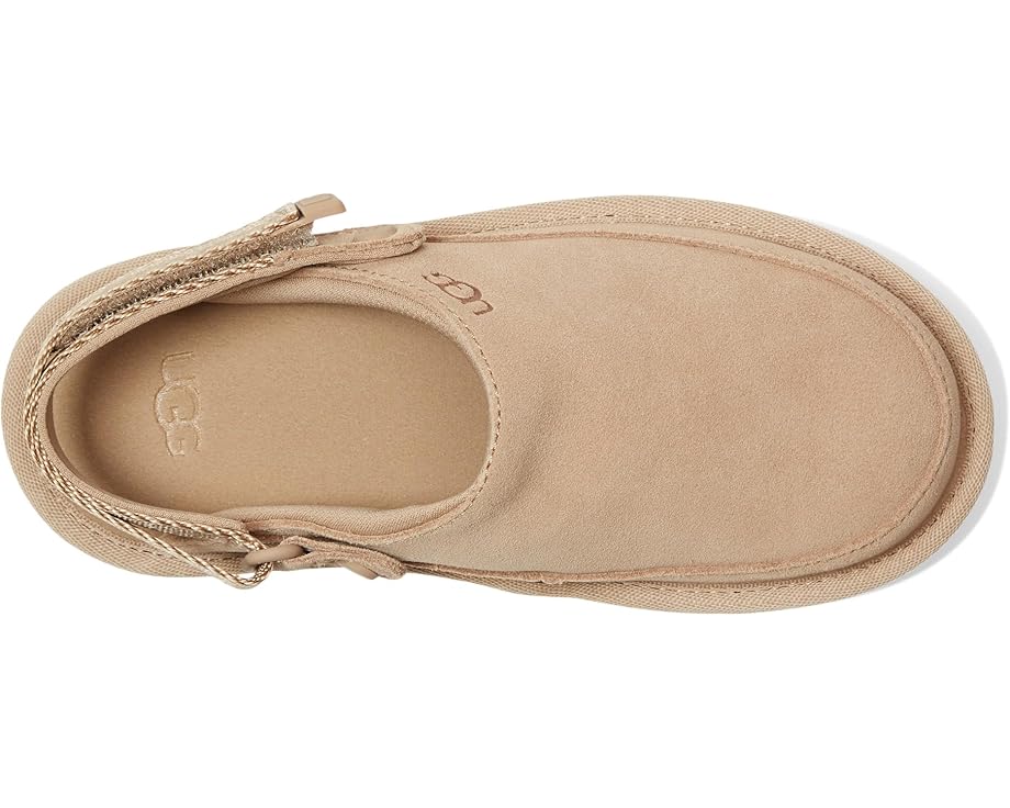 Сабо может быть обувью на данный момент, но эта модель обладает комфортом, который ваши дети любят от UGG Kids Toddler Goldenstar Clogs с замшевым верхом и пенопластовой стелькой. Эти сабо поставляются с регулируемым пяточным ремешком и застежкой на липучке, поэтому они идеально подходят для игры в течение всего дня. Подкладка из 100% переработанного полиэстера сохраняет прохладу и комфорт ног вашего ребенка. Эти сабо имеют конец ремешка из ТПУ с графическим шрифтом UGG для дополнительного стиля. Позаботьтесь о том, чтобы ваш ребенок чувствовал комфорт и поддержку в течение всего дня в этих шлепанцах-сабо.